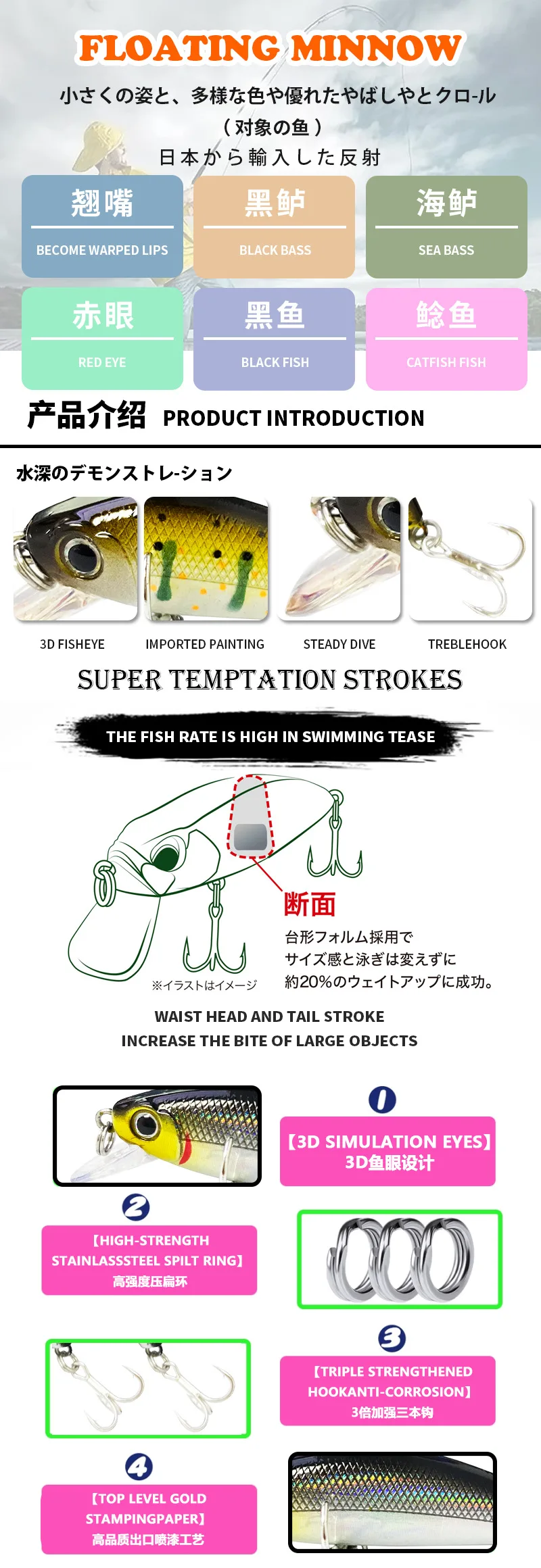 Señuelos de Pesca de pececillo que se hunden, cebo Artificial Jerkbait, Wobblers para Lucio, trucha, Swimbait, equipo de Pesca, 65mm, 9g
