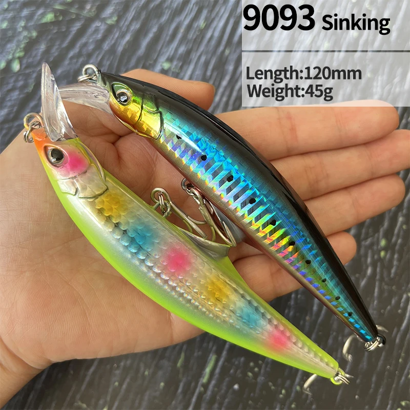Señuelos de Pesca de pececillo que se hunden, cebo duro Artificial de fundición larga, trucha, lubina, accesorios de Pesca Wobbler Isca, 120mm, 45g