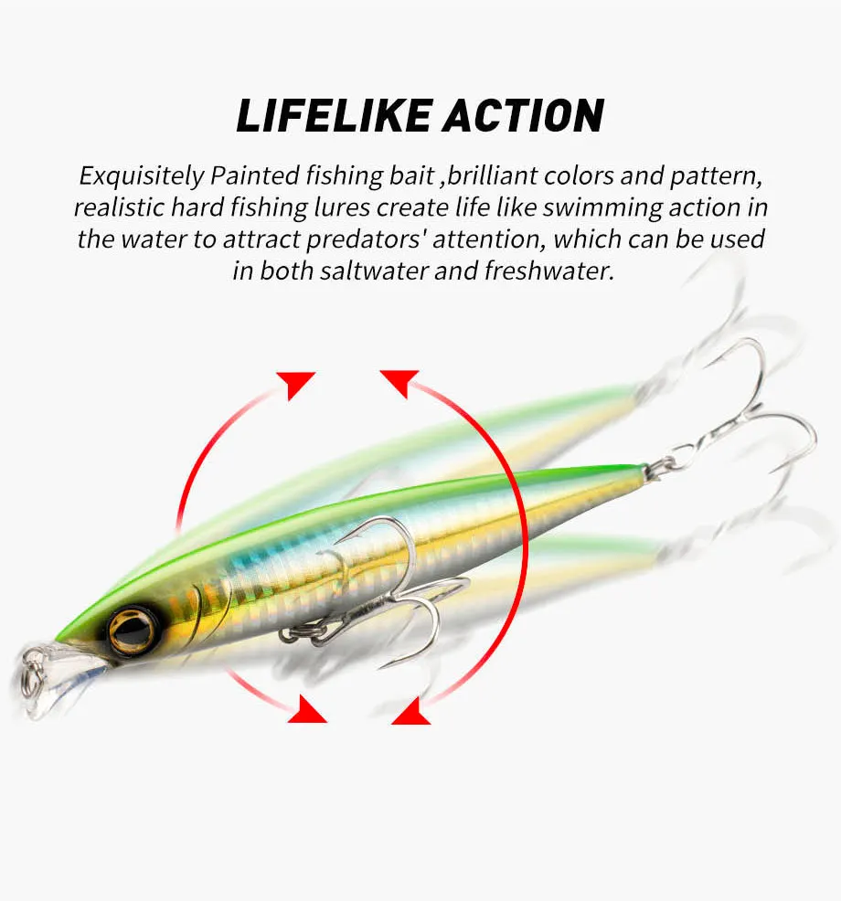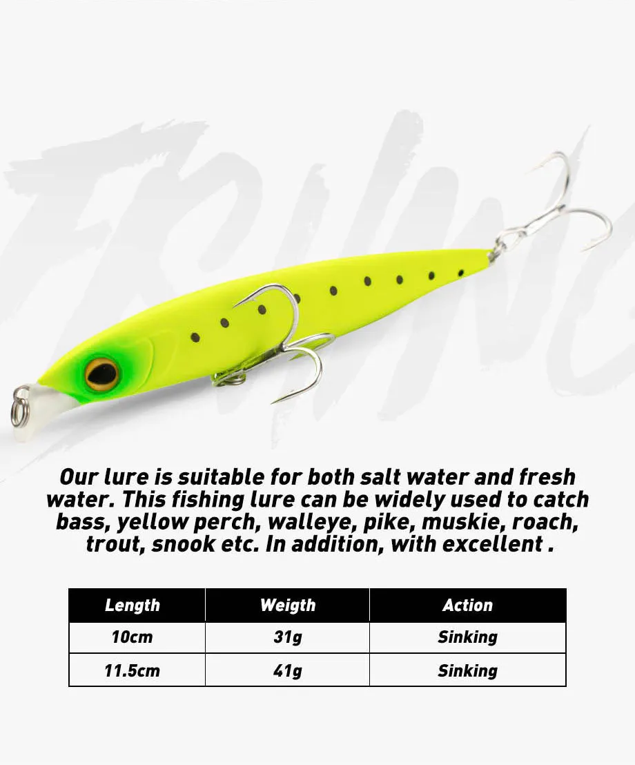 Señuelos de pesca de pececillo que se hunden, peso pesado, 31g, 41g, cebo duro Artificial de fundición larga, Wobblers de lubina para trucha de agua salada, 1 Uds.