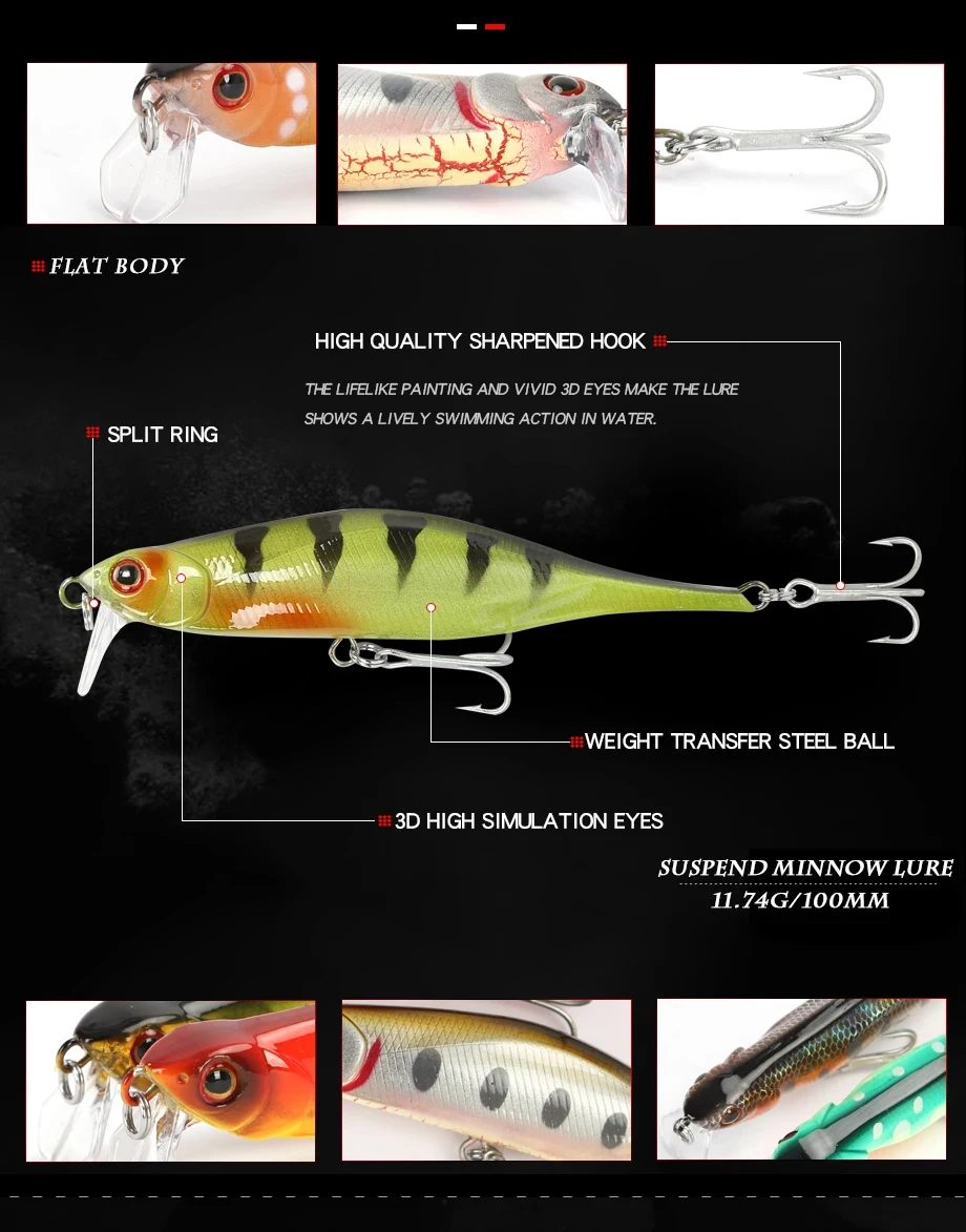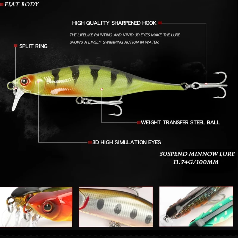 Señuelos de Pesca de pececillo suspendido, 100mm, 12g, Wobbler para lubina, trucha, agua salada, cebo duro Artificial de plástico, accesorios de Pesca