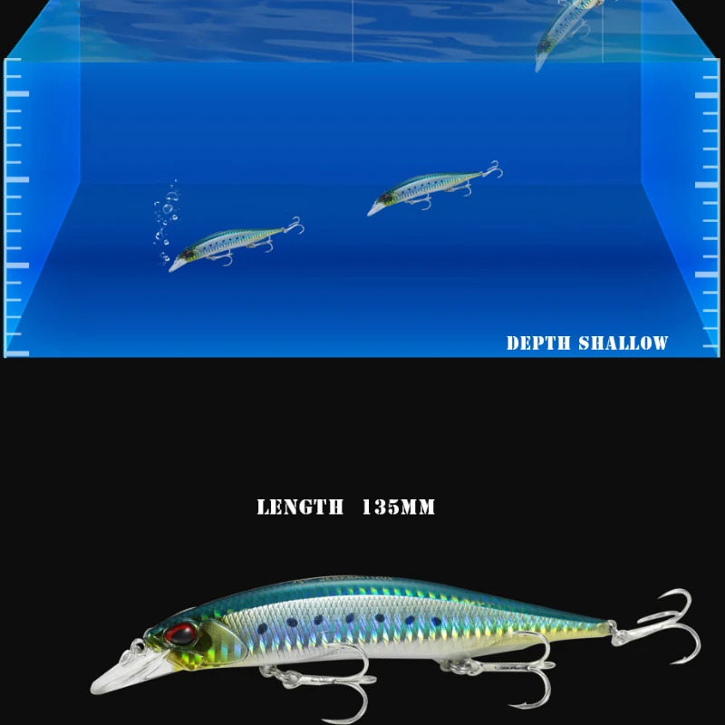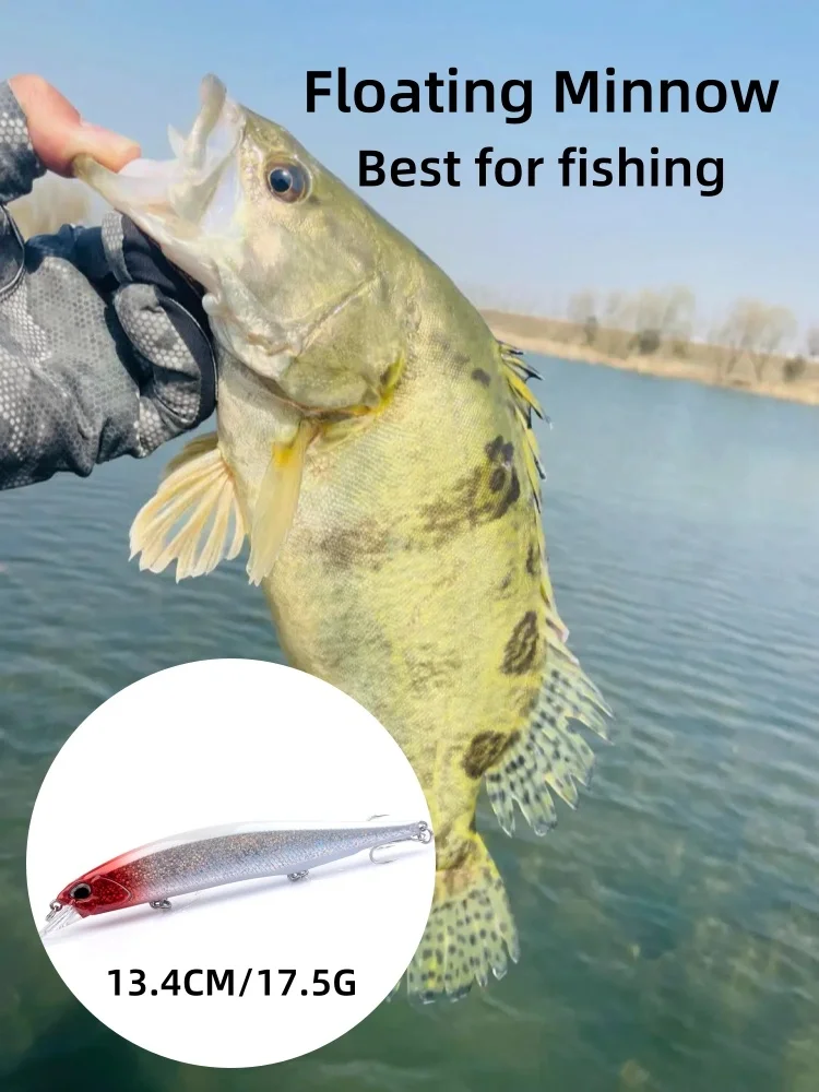 Señuelos de pesca de pececillos de agua superior, eficaces, 13,4 CM/17,5G, ideales para lanzamiento de larga distancia y pesca de lubina de agua dulce