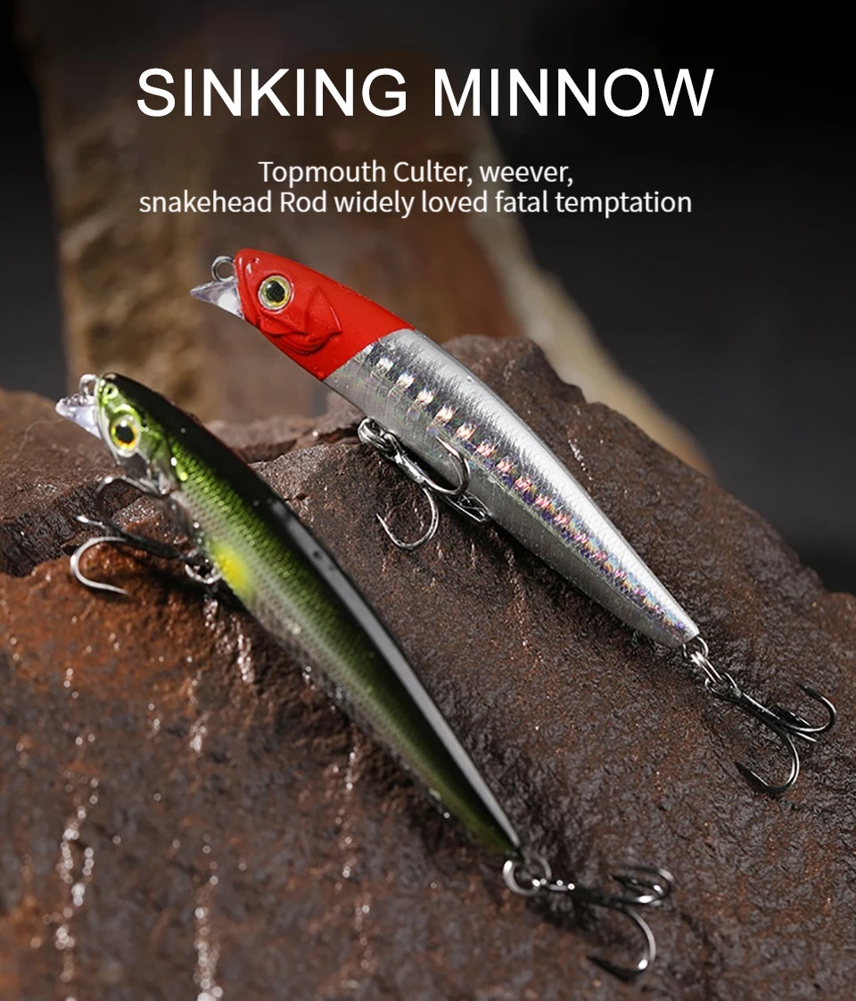 10g/70mm 14g/80mm Minnow Señuelos de Pesca 3D Fisheyes cebo duro hundimiento Wobblers labio corto Megabass cebo Pike Bass Stream pesca