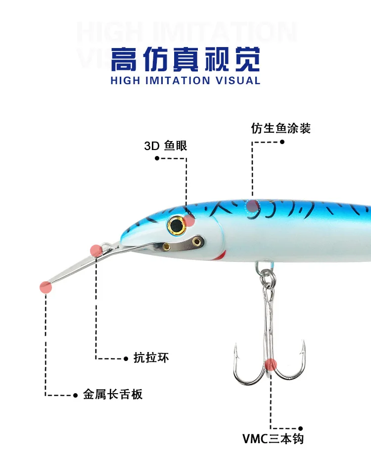 Señuelos de Pesca de pececillos, cebos artificiales flotantes de 130mm y 32,5g, 0-5m, con labio de acero, para pesca de atún en el mar