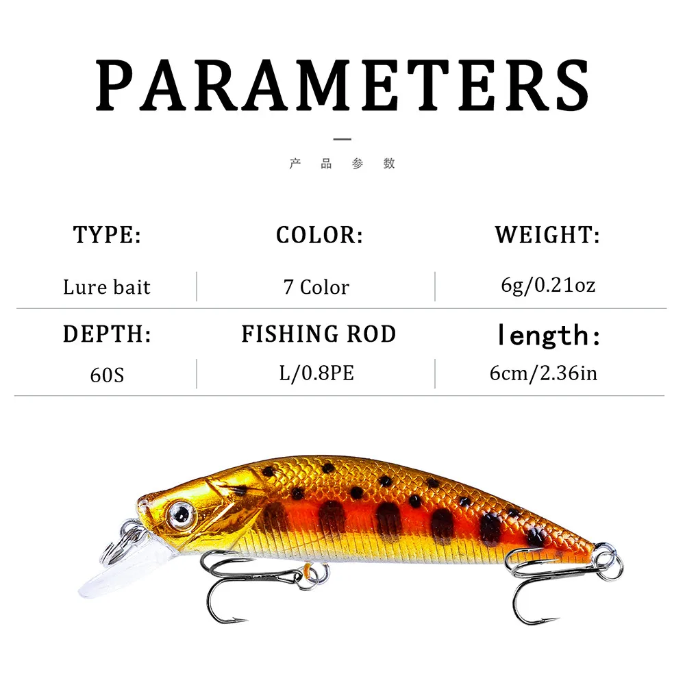 Señuelos de Pesca de pececillos, cebos artificiales de plástico, aparejos de pesca de lubina, carpa, Lucio, 6cm, 6,7g, 1 unidad