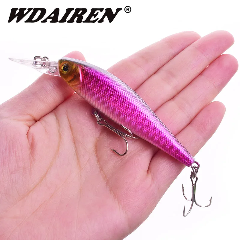 Marca: WDAIREN Tipo de señuelo: señuelo de pesca Minnow Peso del señuelo: 9,2g/0,32 oz Longitud del señuelo: 100mm/3.93in Material: plástico ABS de protección ambiental Ganchos: 6 # gancho de carbono Ojos: ojos de pez 3D Anillos: Anillos planos Colores: 8 colores diferentes Lista del paquete: 1 * señuelo de pesca