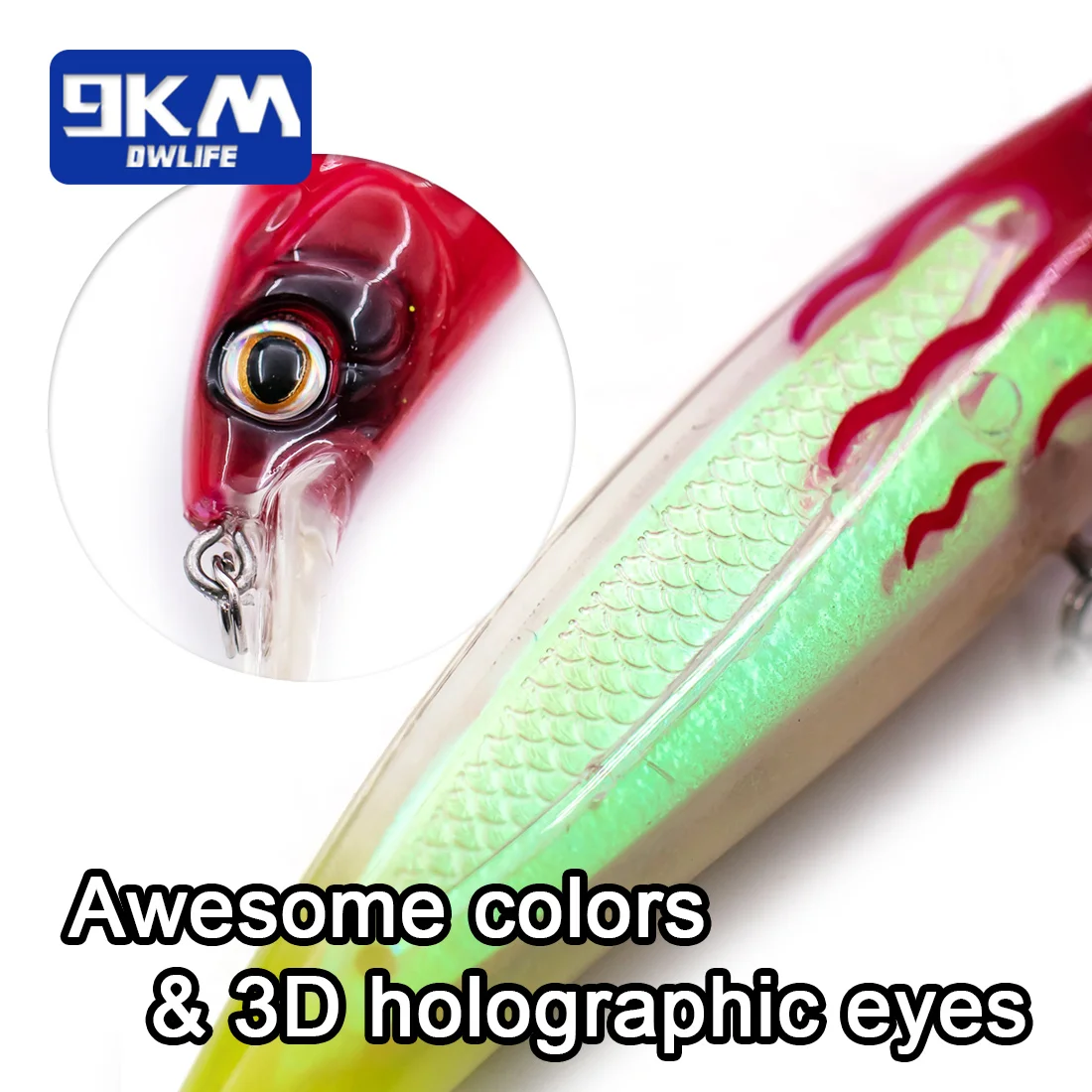 Los señuelos Bass tienen un cuerpo pintado de colores vivos y ojos simulados en 3D, generan Señuelos de Pesca de aspecto realista y resultan ser un señuelo mortalmente atractivo para los peces que deambulan.