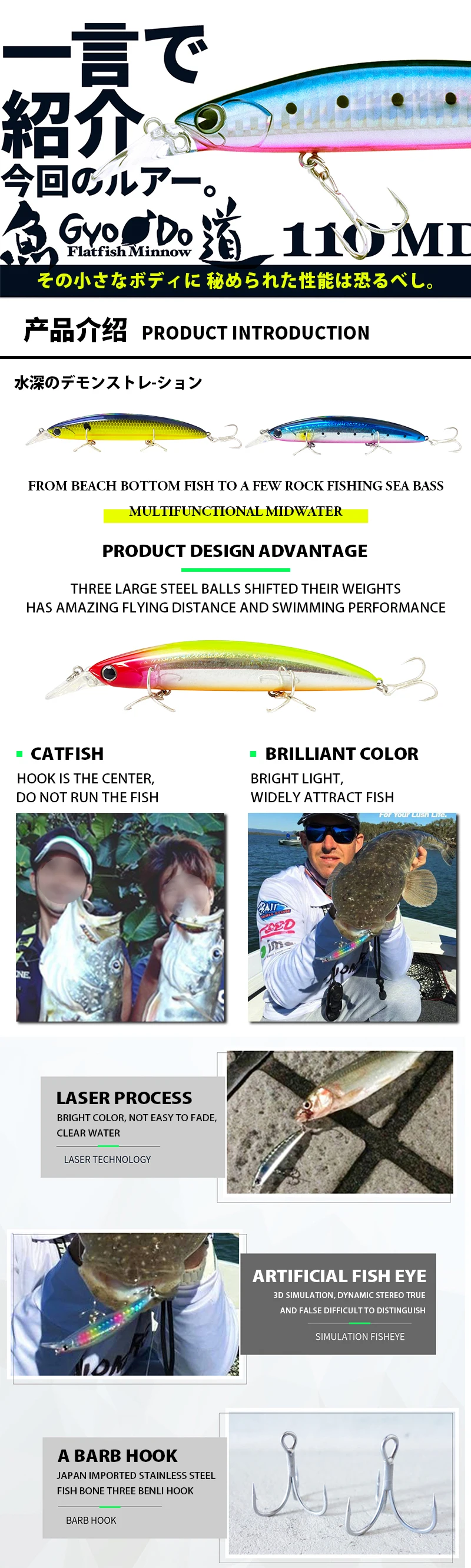 Señuelos de Pesca de pececillos flotantes, cebo duro Artificial de fundición larga para lubina de agua dulce, Swimbait, tachuela Jerkbait, 110mm, 20g, nuevo