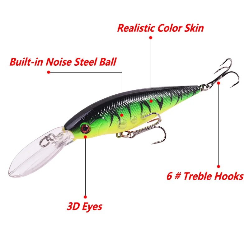 Señuelos de Pesca flotantes de pececillo, cebo duro Artificial de plástico Wobblers de labios largos de 11cm y 10g, con 6 anzuelos, Crankbaits
