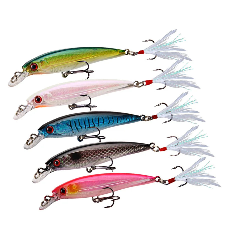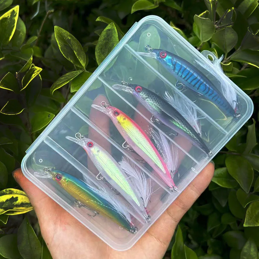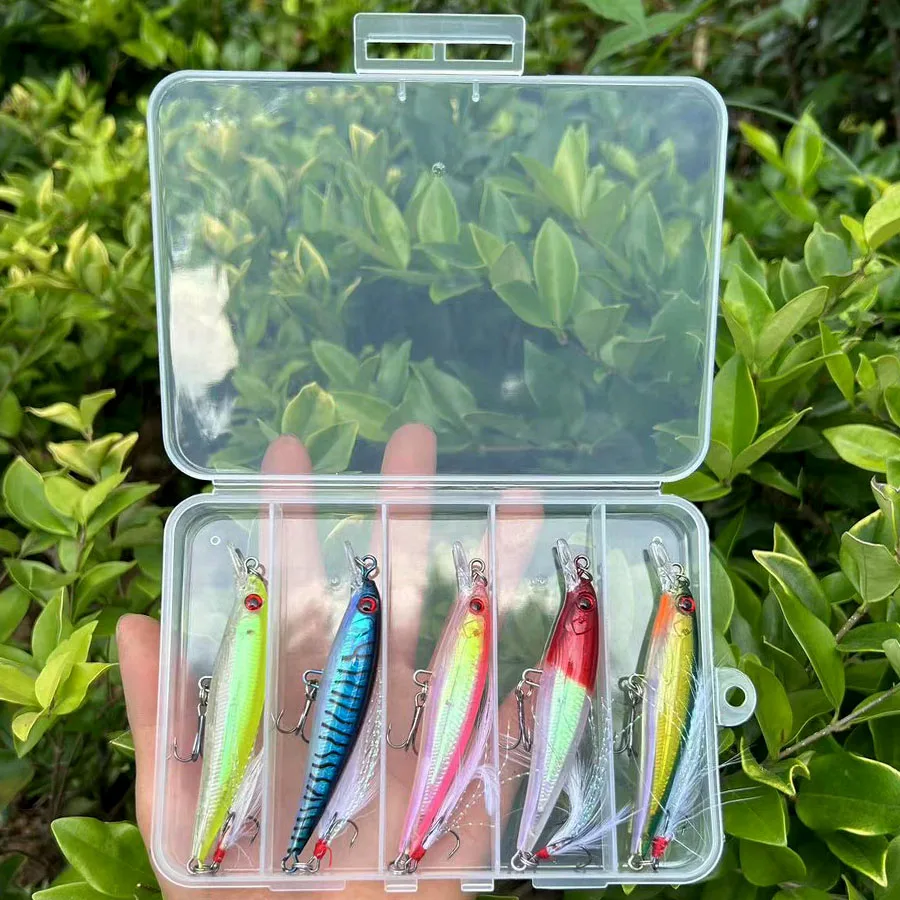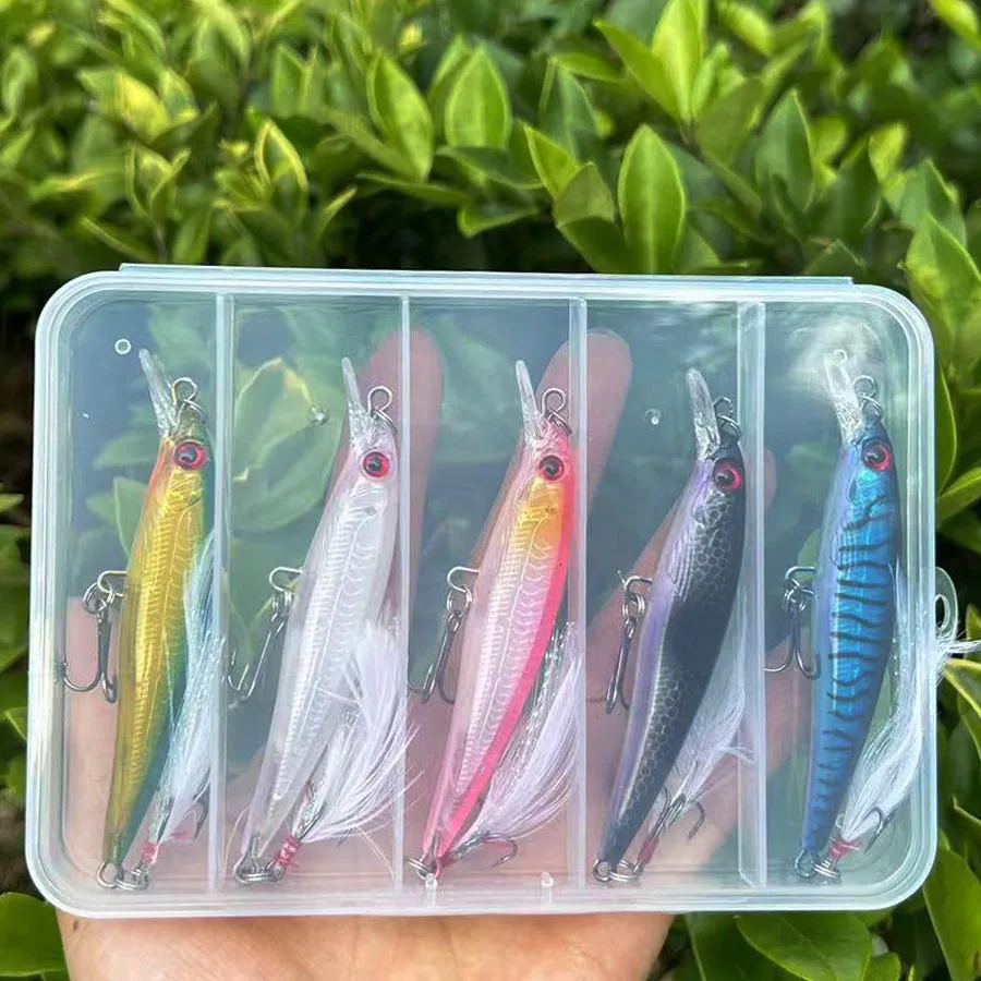 Señuelos de Pesca de pececillos flotantes, cebos duros, Wobbler, cebo Artificial, Crankbaits, carpa, aparejos de pesca de lubina a rayas, Swimbait, 5 unids/lote por caja