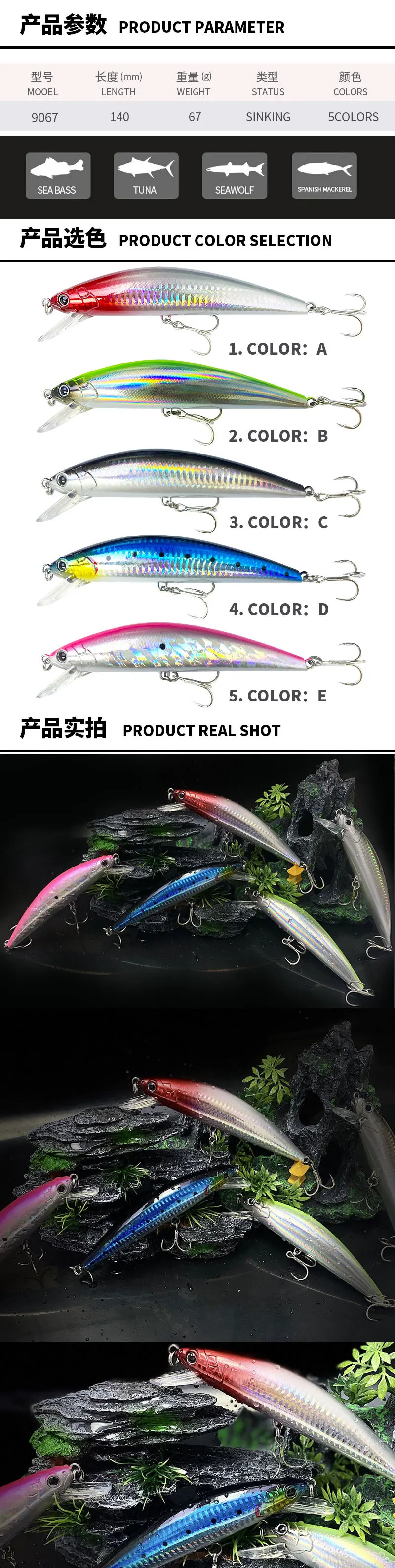 Señuelos de Pesca de pececillos de hundimiento pesado, cebo Artificial para lubina, accesorios de Swimbait de fundición larga, 140mm, 67g