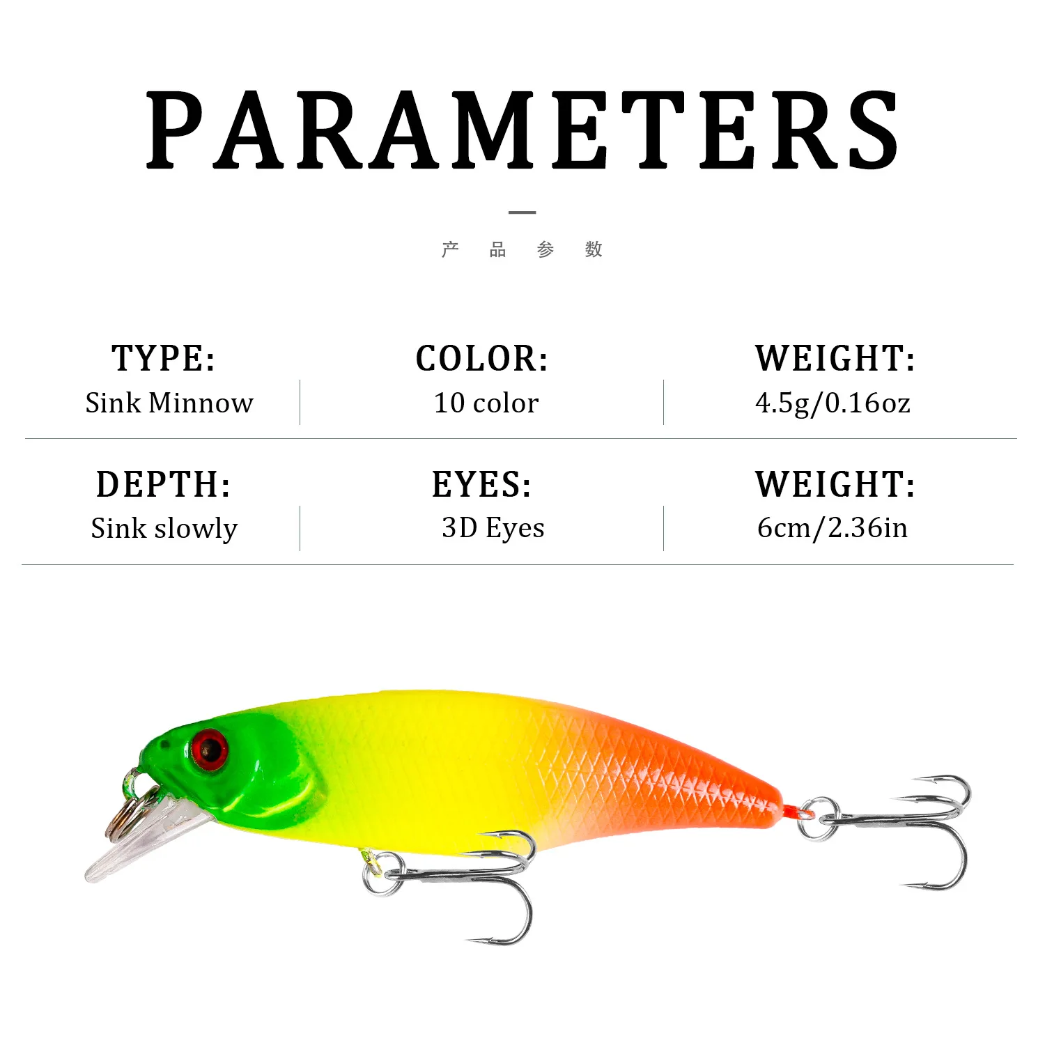 Señuelos de Pesca de pececillos que se hunden, 55mm, 4,5g, Jerkbait, Lucio, Carkbait, Wobblers, Swimbait, cebo duro profesional