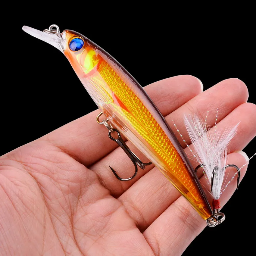 1 señuelos de Pesca de ojos 3D flotantes láser Minnow duro artificial Wobblers Crankbait cebos de plástico Pesca Isca 11cm 13,5G