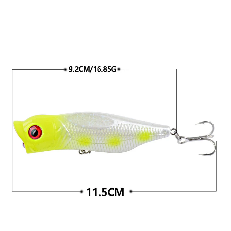Señuelos de Pesca piezas Popper, anzuelos triples duros Wobbler, Pesca con mosca de carpa, aparejos de Pesca artificiales 9,2 cm 16,85