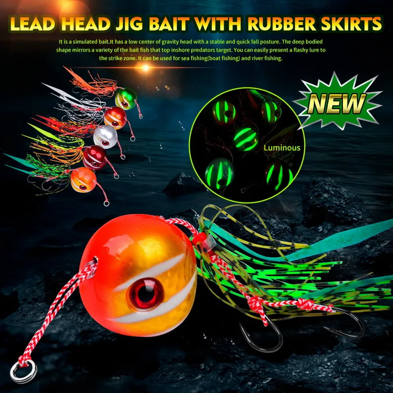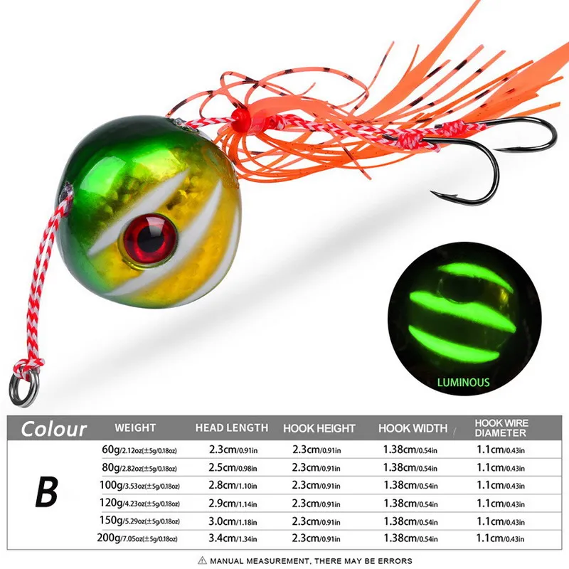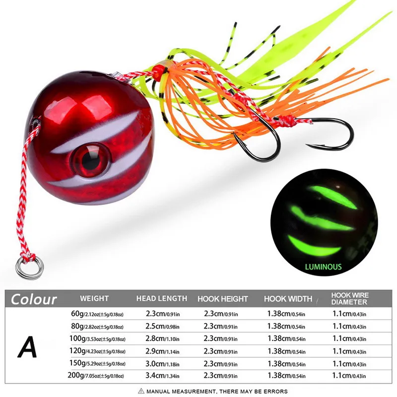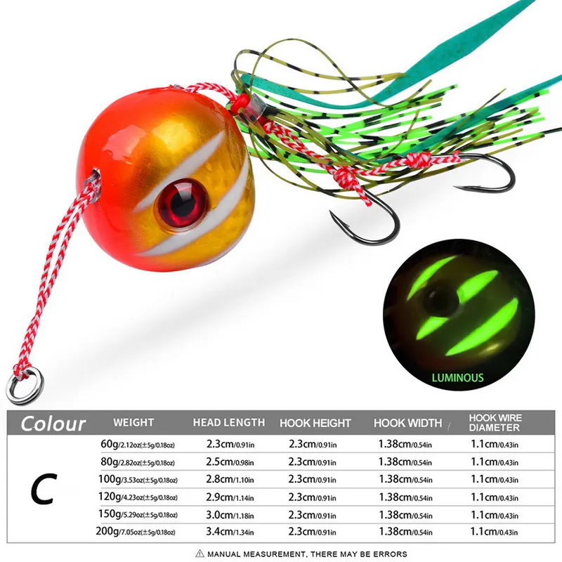 Señuelos de pesca con plantilla de calamar luminosa, falda de silicona multicolor con ganchos dobles para pesca nocturna, señuelo de pesca de calamar, 60G-200G, 1 Uds.
