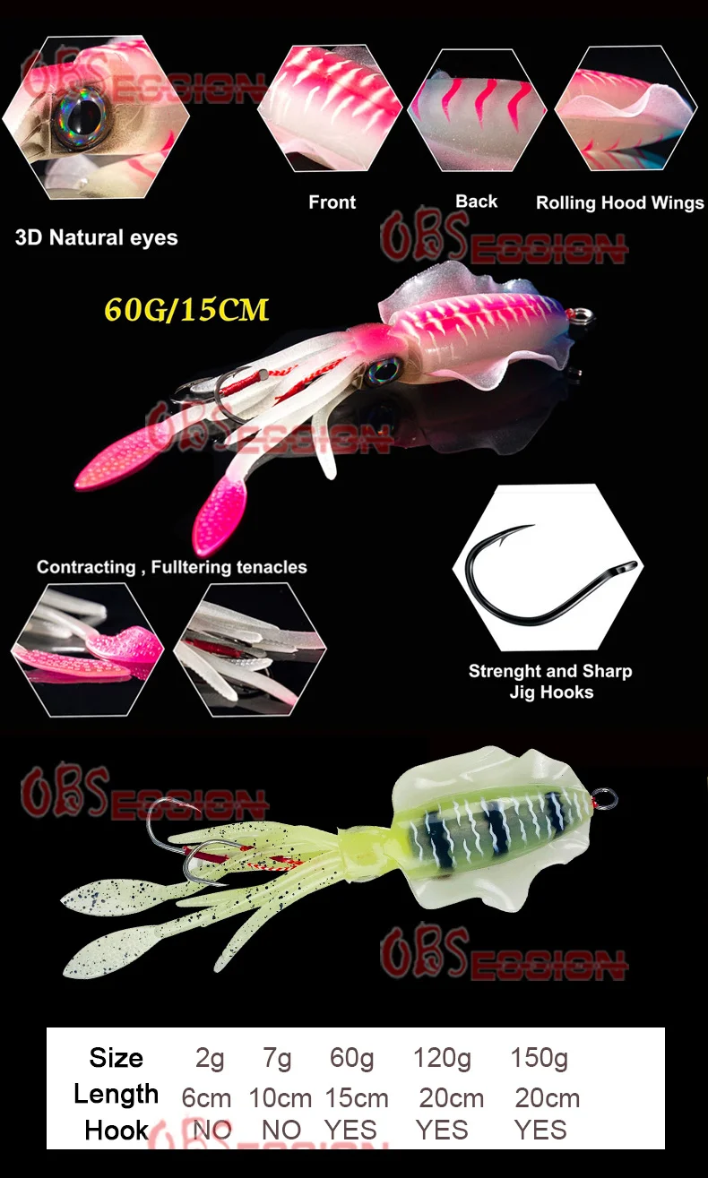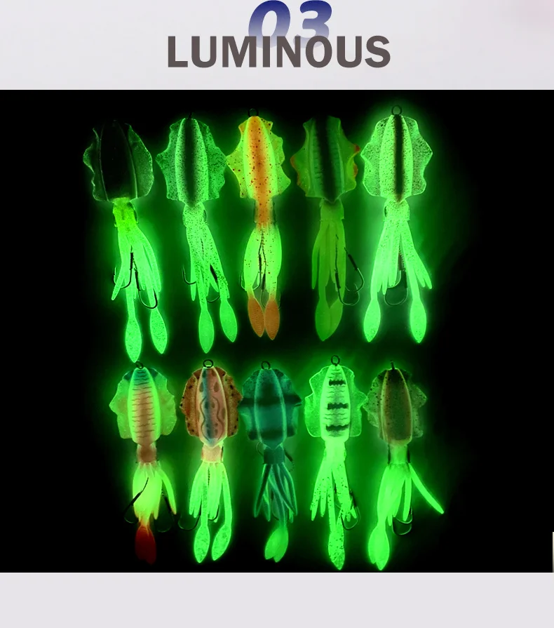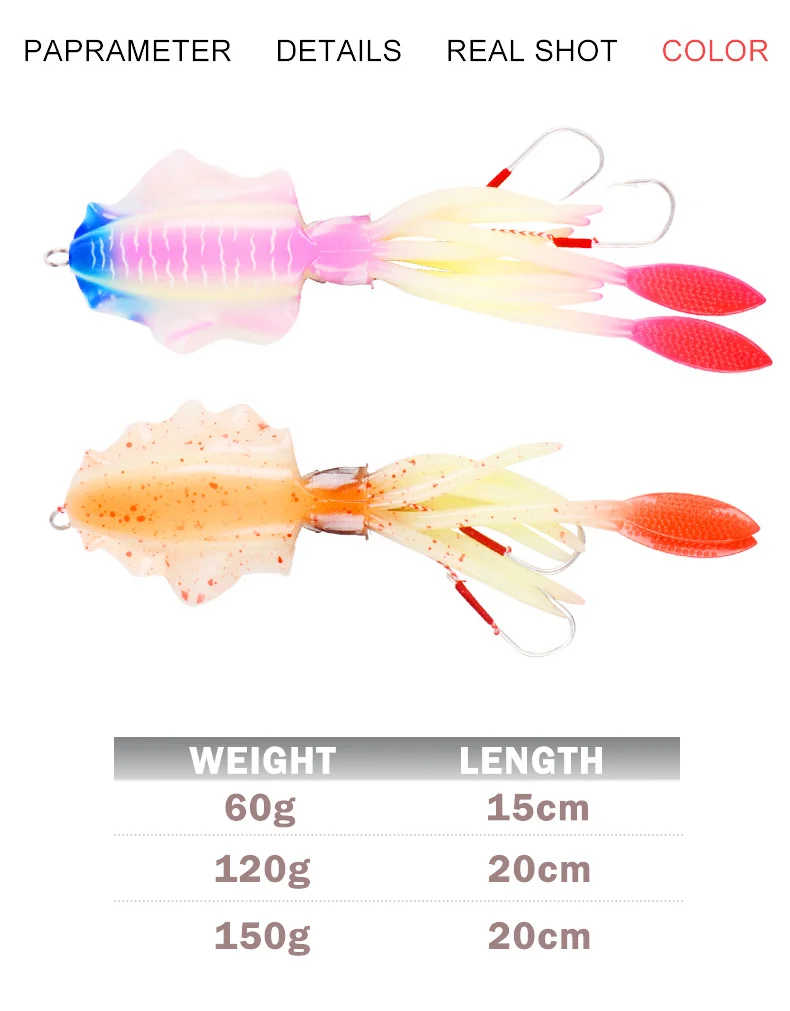 Señuelos de pesca de calamar, señuelo suave de calamar, señuelos de calamar curricán, señuelos de calamar luminosos, señuelo de calamar, señuelo de calamar, cebo suave de calamar, pulpo de pesca de calamar, plantilla de calamar
