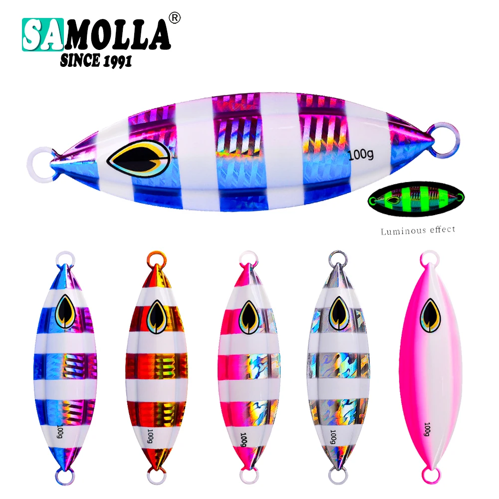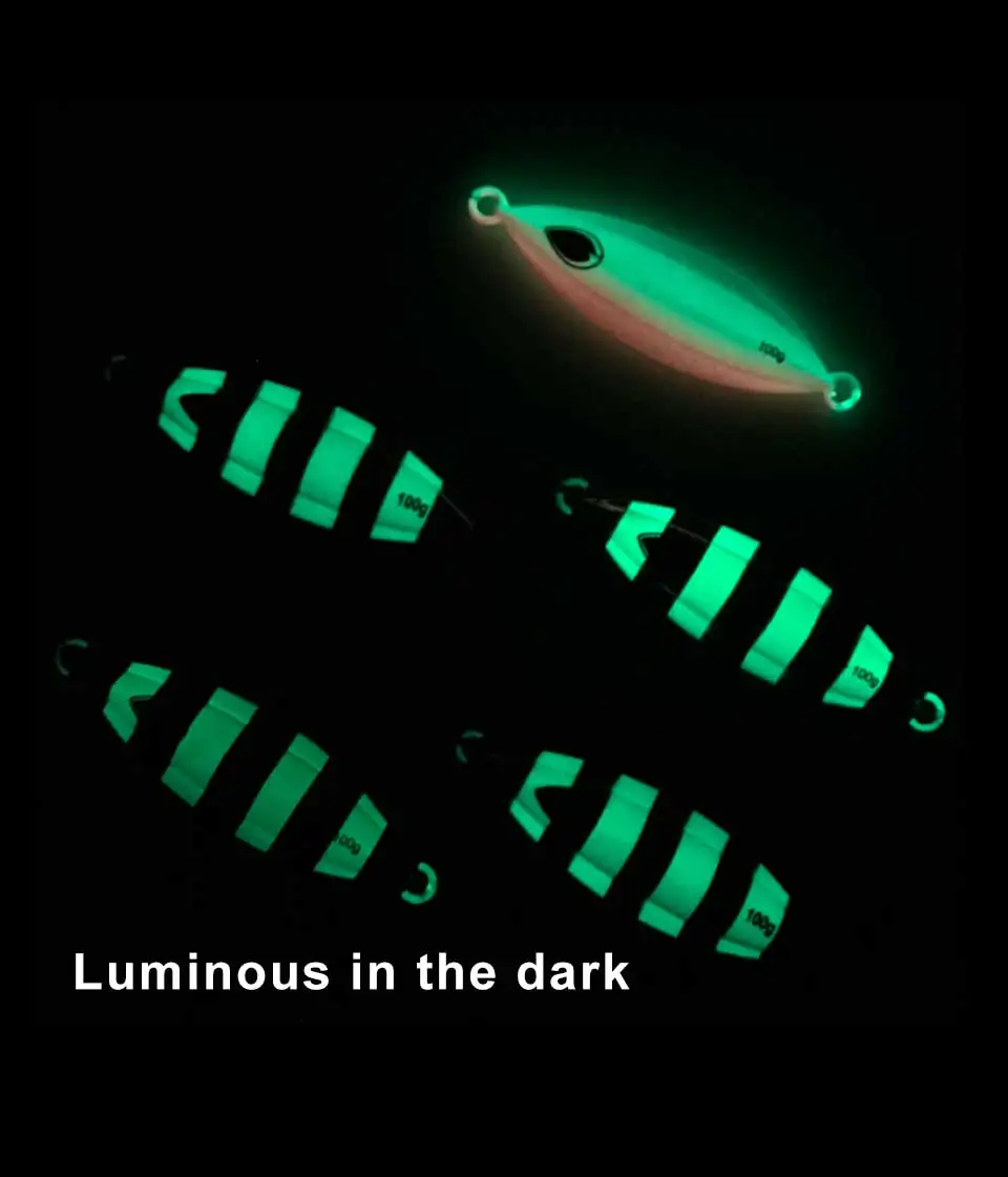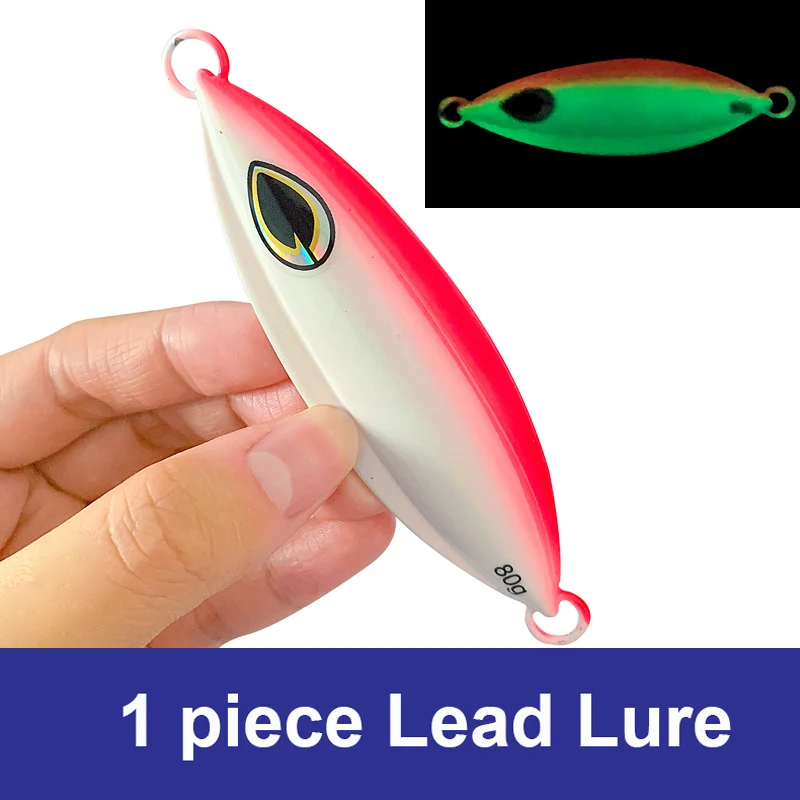 Lunker Plantilla de metal jigging lento 40g 60g 80g 100g 150g 200g resplandor luminoso mar profundo agua salada océano barco roca playa Señuelos de Pesca