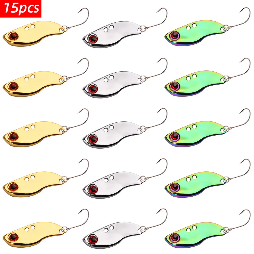 Señuelos de pesca con plantilla de hoja VIB de Metal, 15 Uds., 2,5g, 3,5g, 5g, cuchara vibratoria, cebo duro, Swimbait, Wobblers que se hunden, Kit de aparejos VIB de cigarra