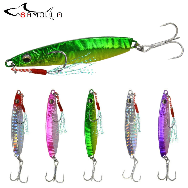 Detalles del producto: marca: SAMOLLA modelo de señuelo: Jig Tipo de señuelo: señuelo de pesca duro peso del señuelo: 18-45g longitud del señuelo: 60-85mm Profundidad de buceo: capa de agua completa flotabilidad: ganchos de hundimiento: Equipados con ganchos anticorrosión de La Ojos: Ojos de pez 3D Anillos: Bicíclico Colores individuales: Colores