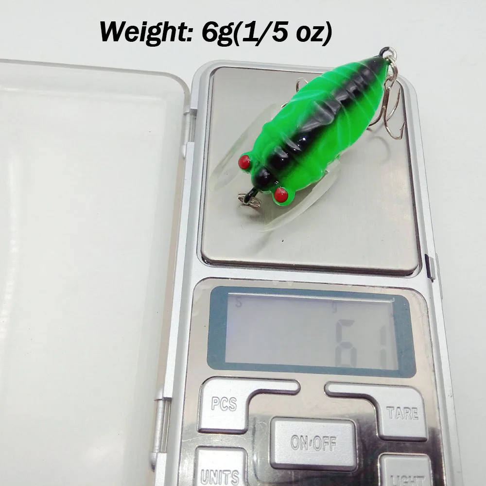 2 Señuelos de Pesca Popper de 2, 4cm, 6G, duro señuelo, simulación de ala de cigarra, insecto biónico Topwater Wobbler, cebo Artificial Crankbaits con caja de aparejos