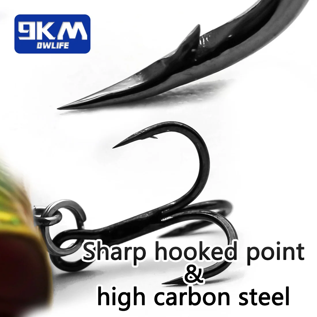 Armado con dos anzuelos triples VMC afilados y anillos divididos de acero inoxidable mejorados para aumentar drásticamente el porcentaje de conexión.El material ABS reforzado y el cuerpo de alambre de acero están listos para resistir el ataque de los depredadores.