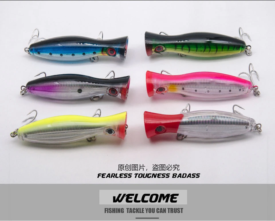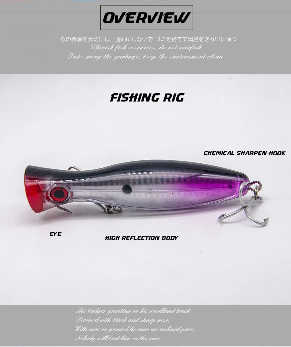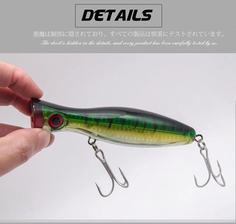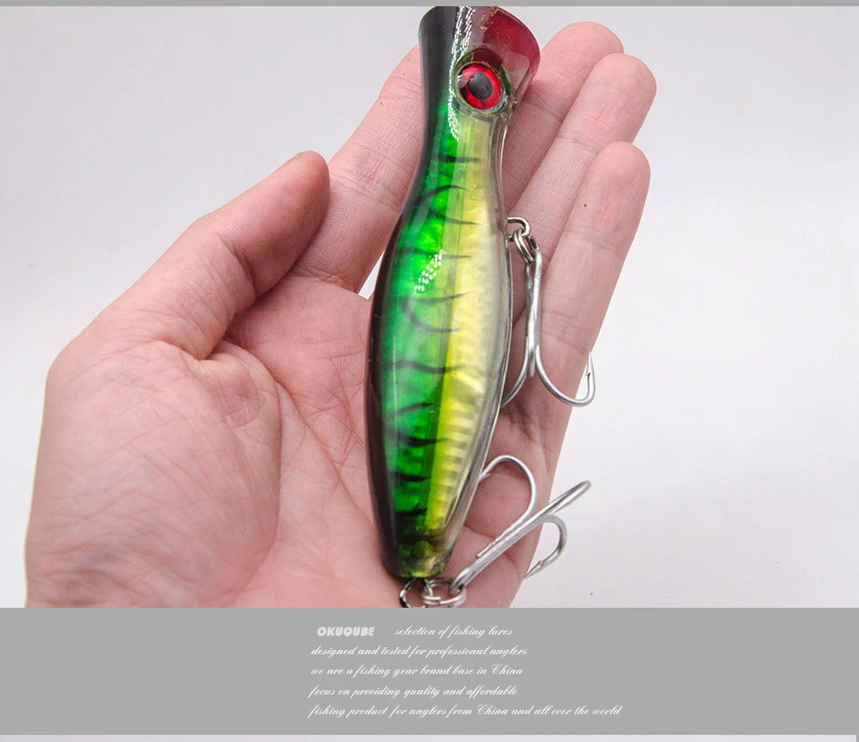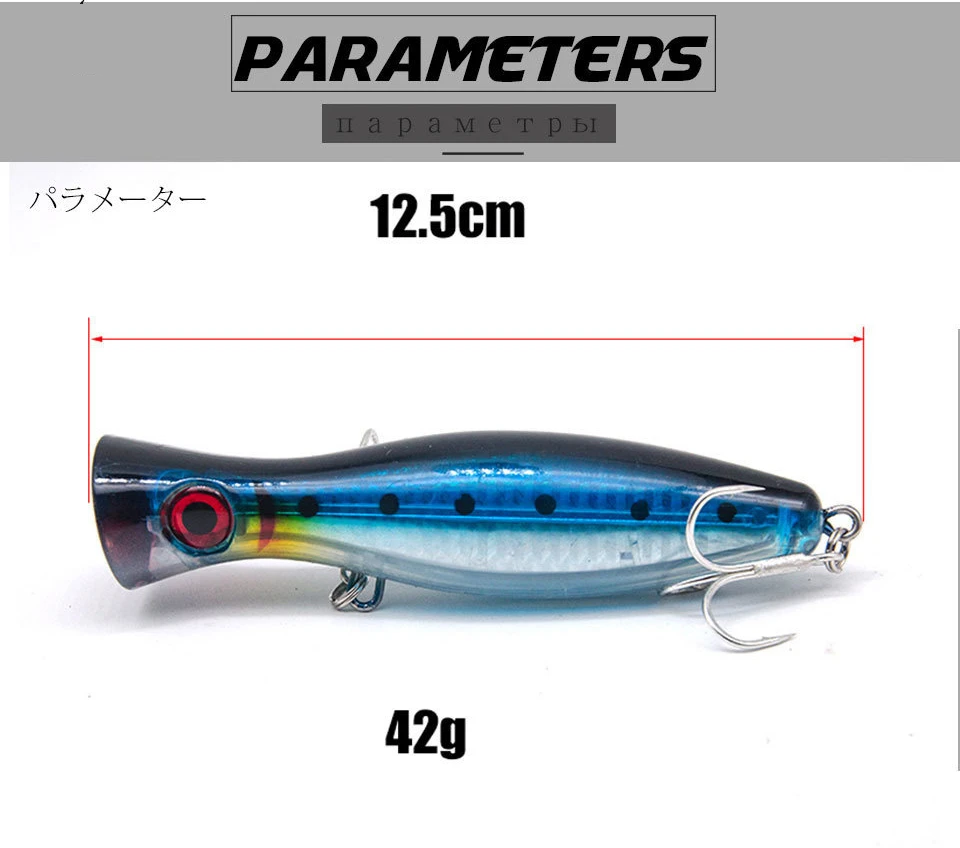 1 unidad de Señuelos de Pesca cebo Popper de agua superior 12,5 cm/42G cebo duro aparejos de pesca artificiales con cuerpo de reflexión y anzuelos afilados