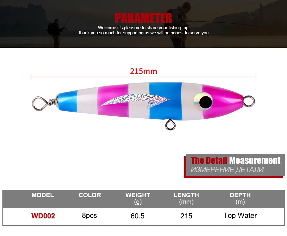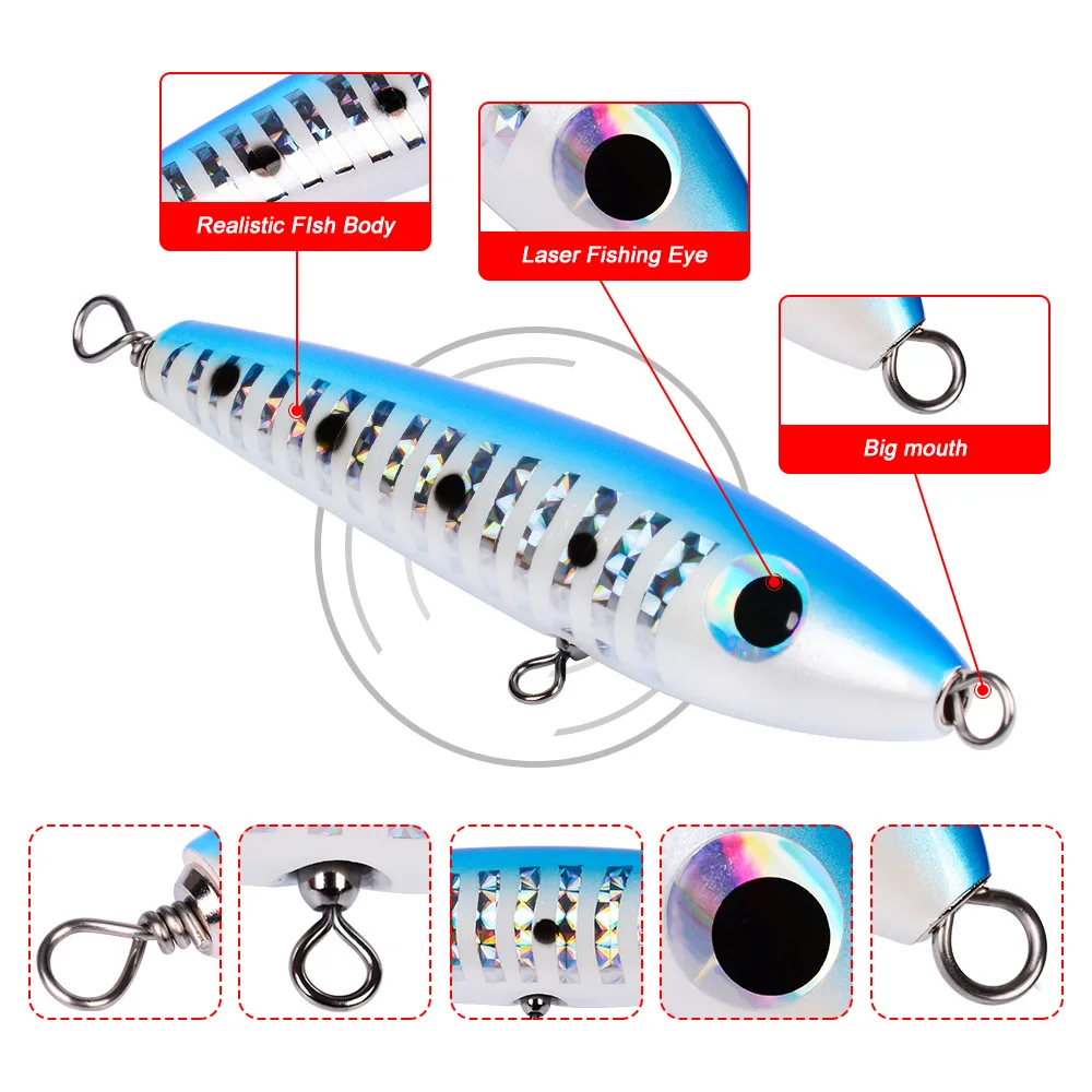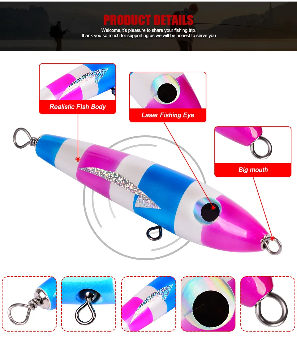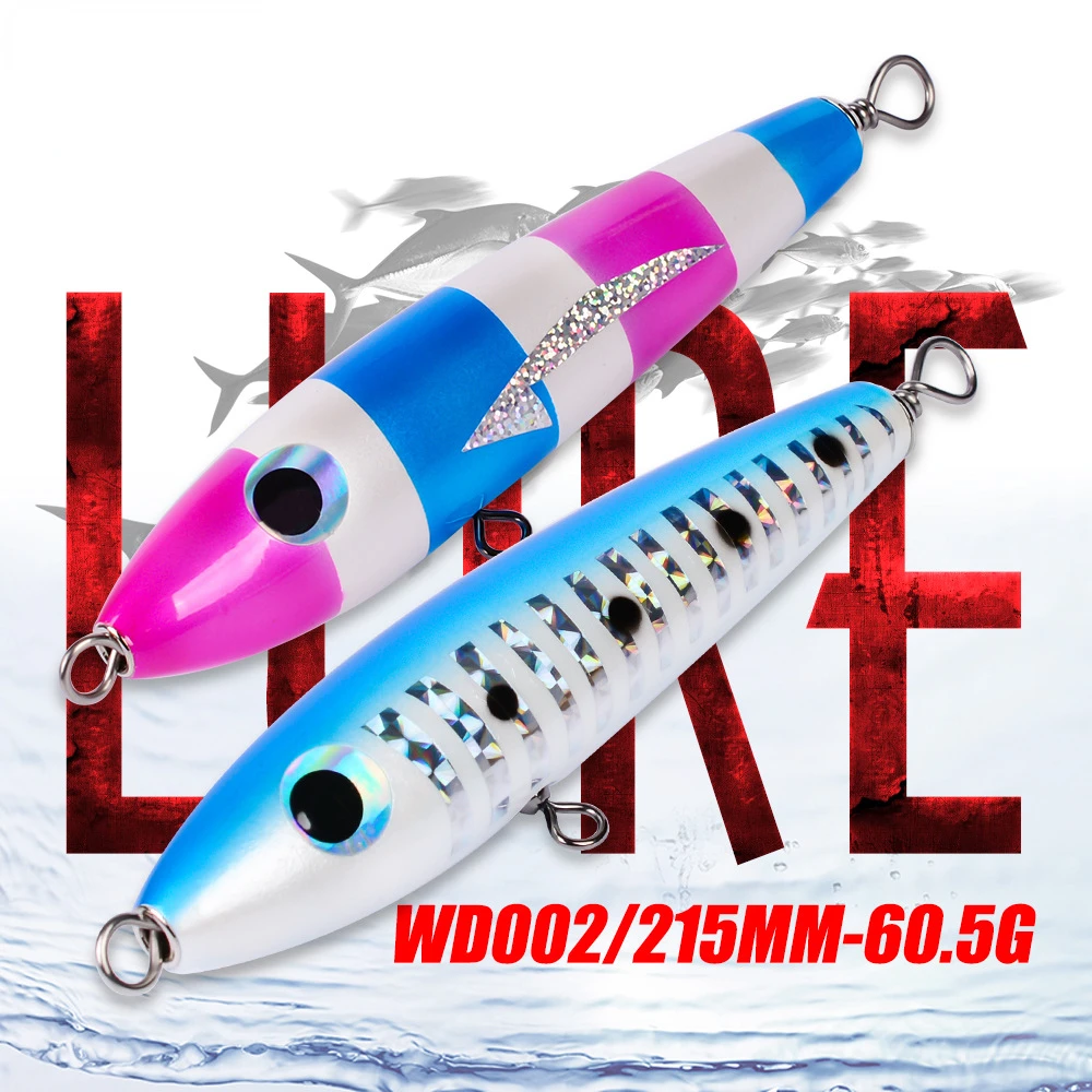 Señuelos de pesca Popper grandes de madera, 215mm, 60,5g, Twitch Wobbler, cebos duros artificiales, superficie de curricán de agua salada, Swimbait de agua superior