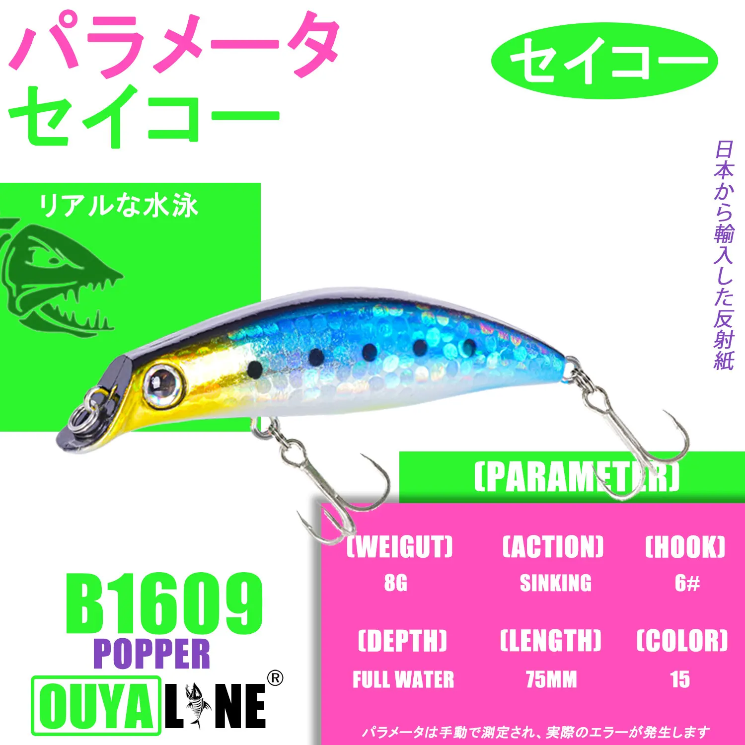 Accesorios de pesca Popper hundidos, señuelos Isca, pesas artificiales, 8g, 75mm, Kit de Articulos de pesca, equipo de Pesca y carpa Leurre
