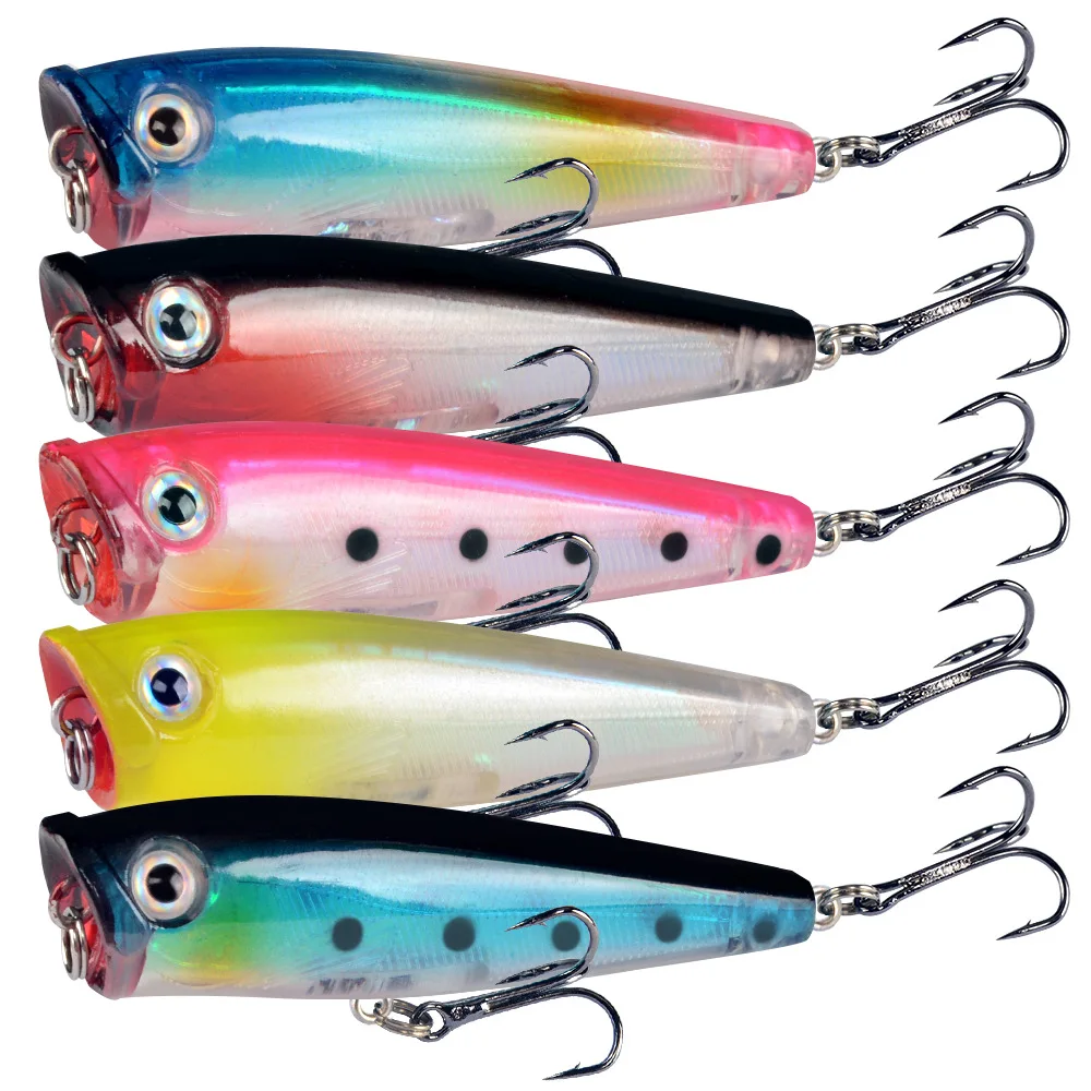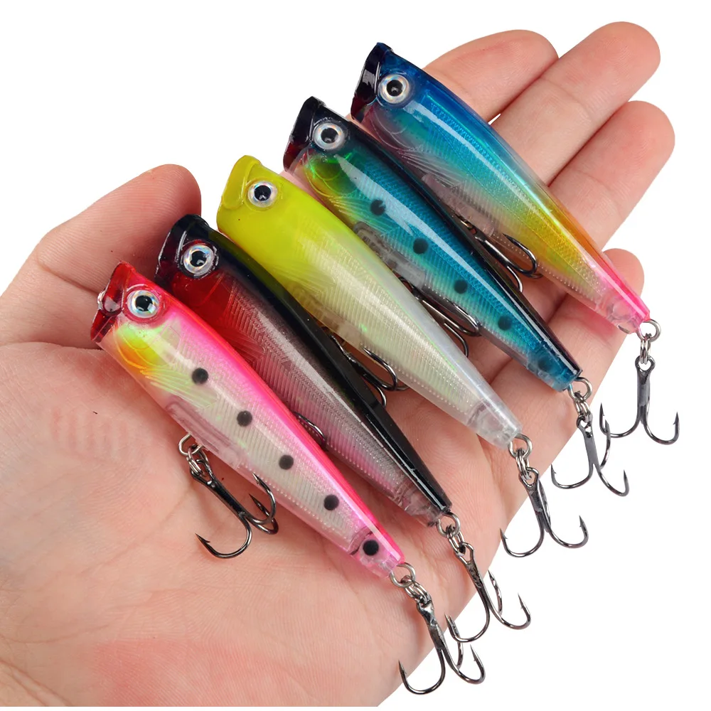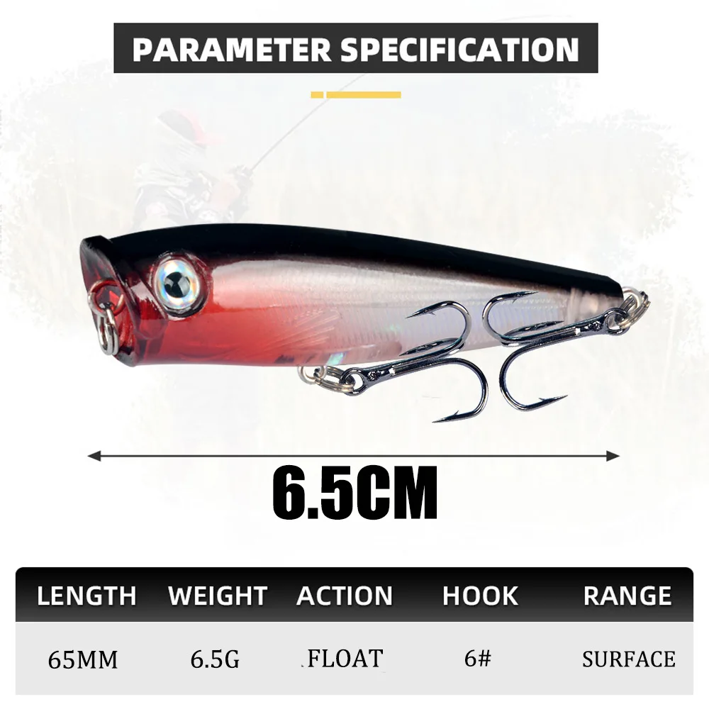 Señuelos de pesca Popper de superficie de 65mm y 6,5g, cebo Artificial de fundición larga, lápiz Topwater, Swimbait Wobblers para equipo de perca de Lucio