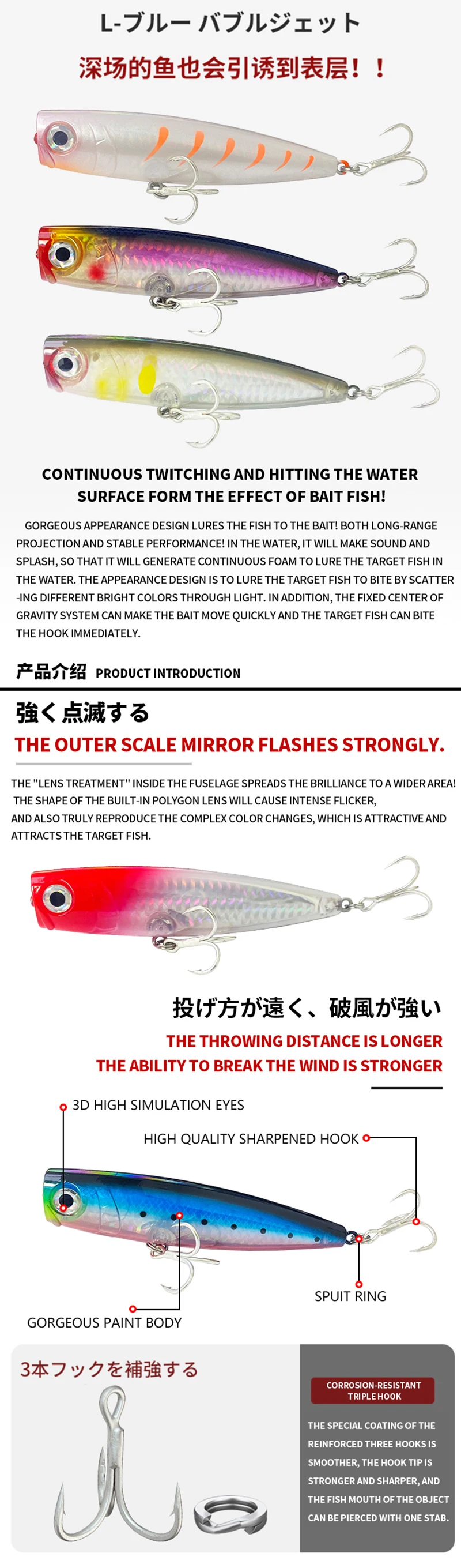 5.Está hecho de material plástico ABS, resistente y fuerte, resistente a caídas y percusiones.Las bolas de acero utilizadas en el interior han sido probadas con instrumentos de precisión para garantizar el estilo de natación de cada cebo.
