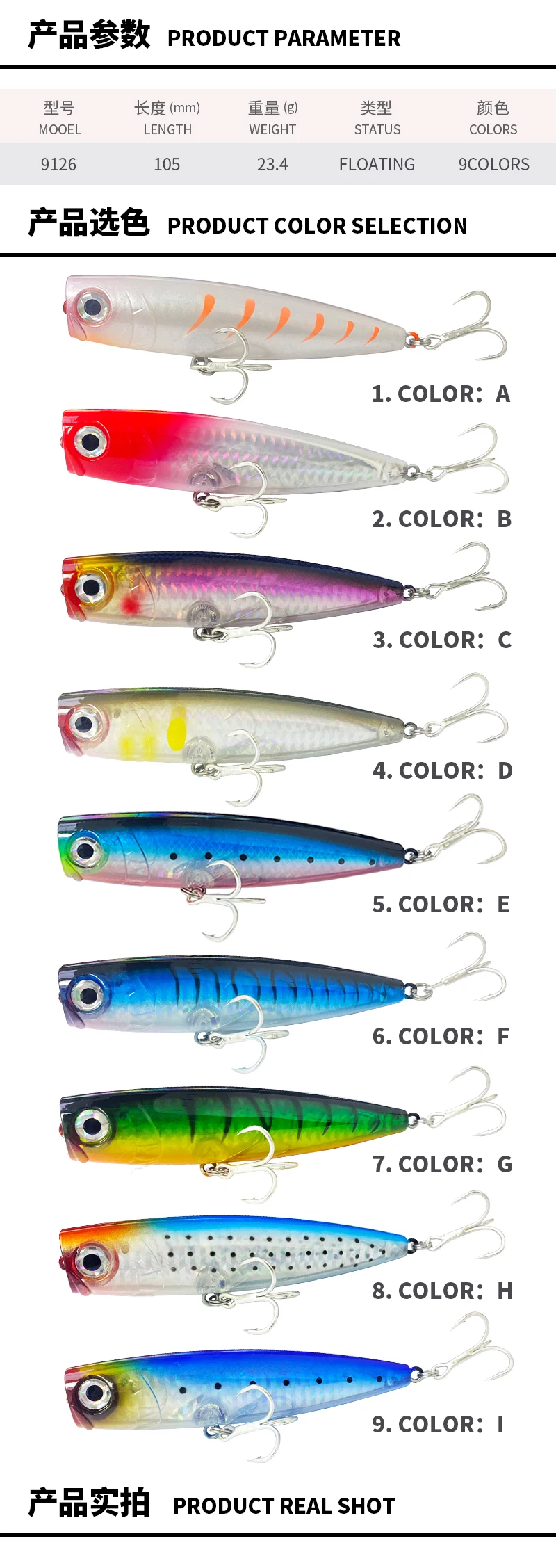 Los mejores señuelos y cebos de pesca Popper, 105mm, 23g, leurres de pesca con curricán de agua salada, señuelo Popper de fundición superior