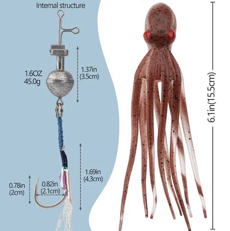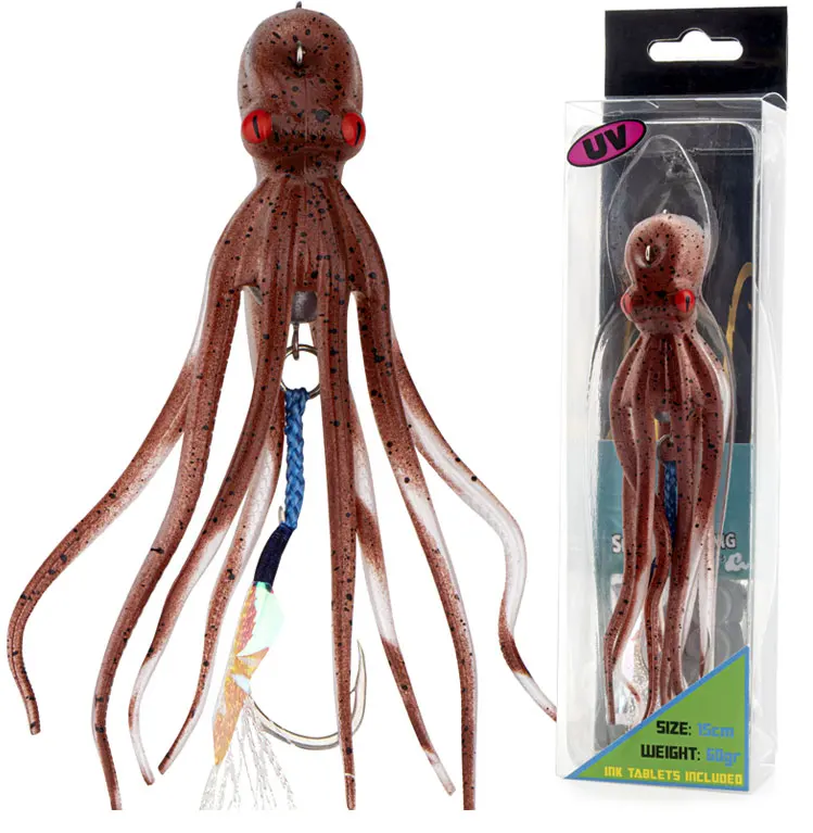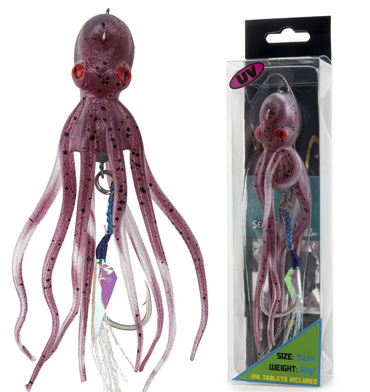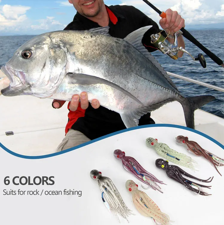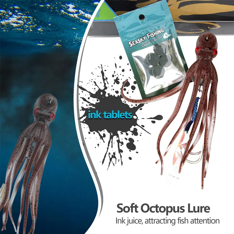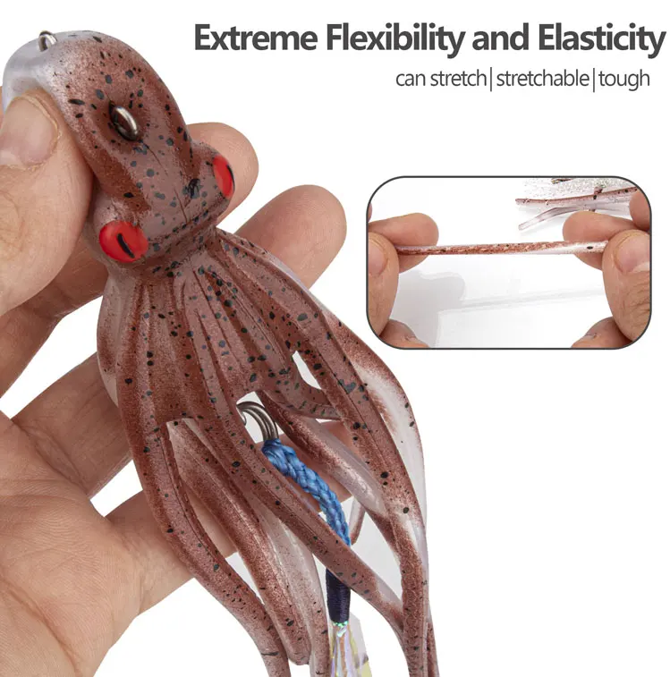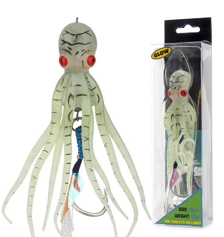 Señuelos de Pesca de pulpo de 15,5 cm, cebos blandos de falda de calamar, cebo Artificial que brilla en la oscuridad con gancho, 1 unidad
