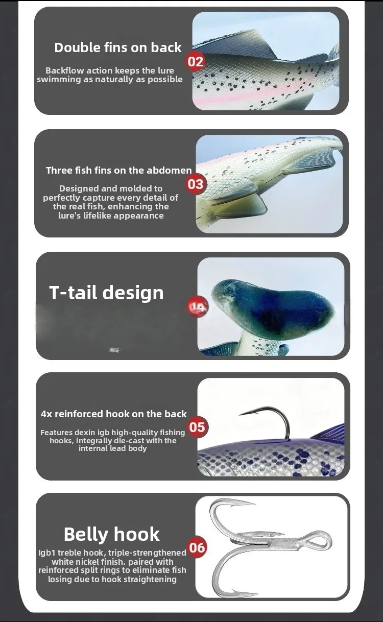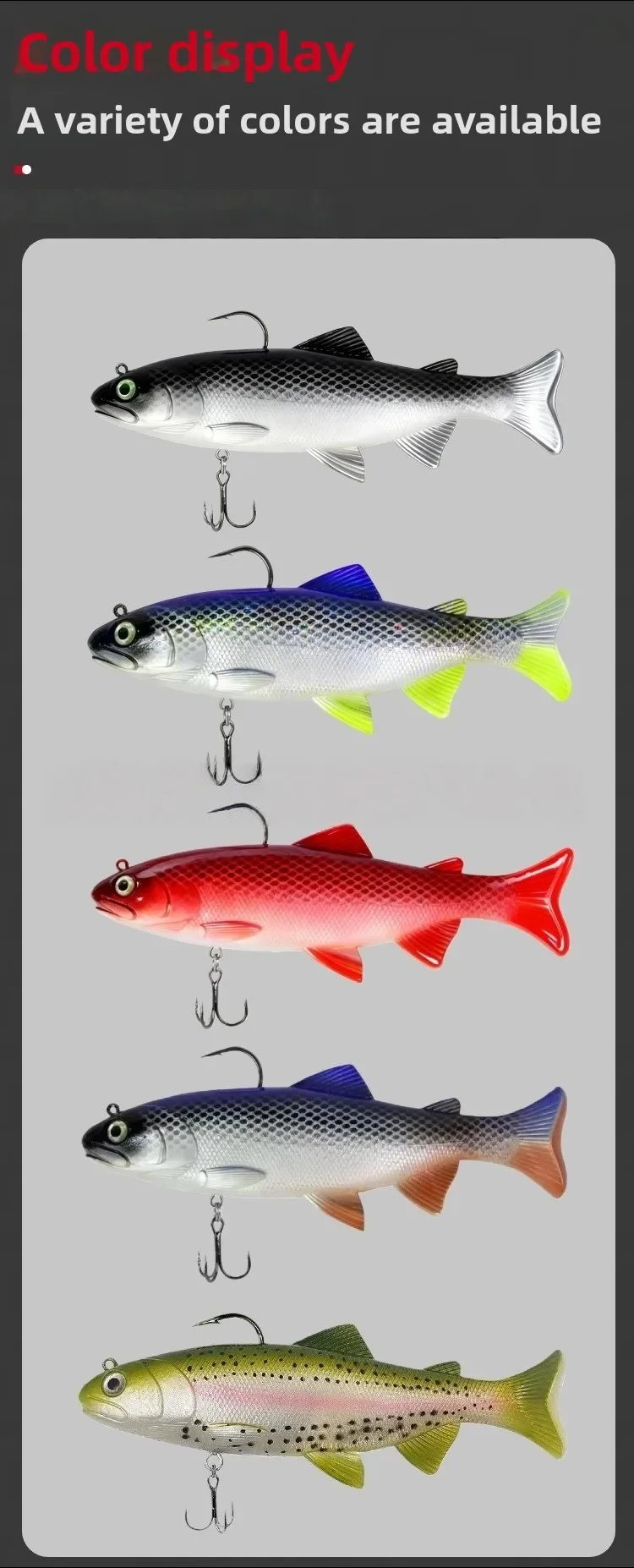 Señuelos de pesca de PVC con cabeza de trucha, cebos artificiales para natación, cola en T, señuelos blandos de silicona, Swimbait Wobblers, 20cm/130G
