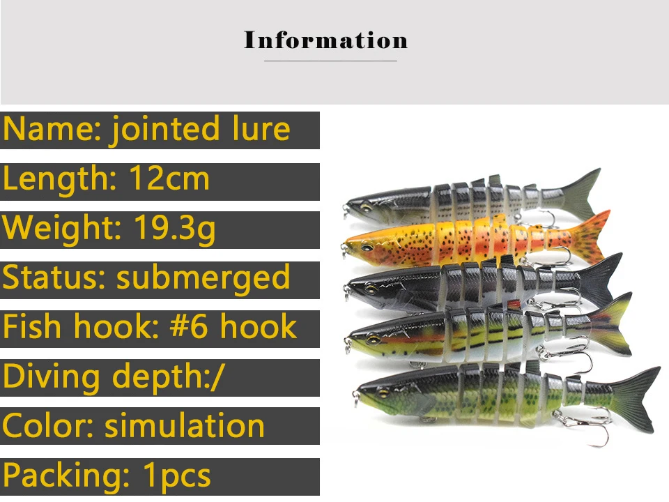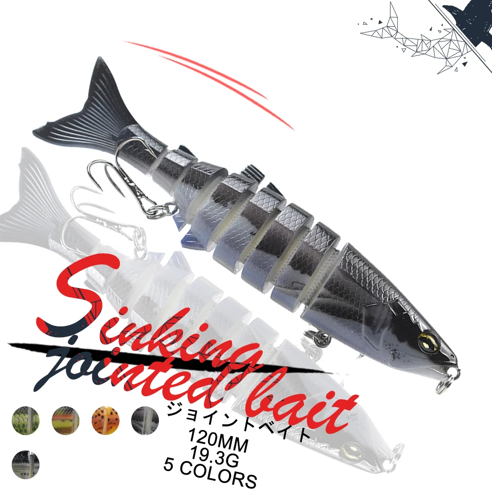 1 ud. 120MM 19,3G Wobblers de hundimiento, Señuelos de Pesca de 8 segmentos, cebo Multi articulado, cebo Artificial duro Swimbait Minnow, aparejos de pesca