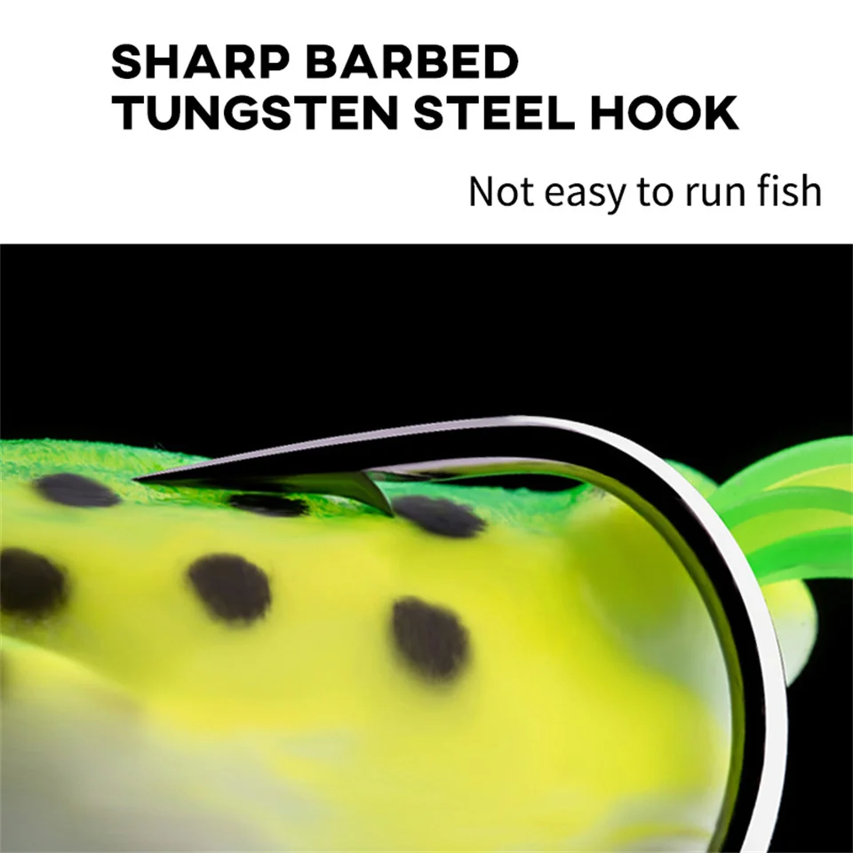 • Material de alta calidad:Elaborado con silicona de primera calidad, este señuelo de pesca de rana es duradero y resistente, lo que garantiza un rendimiento duradero en diversas condiciones de pesca.