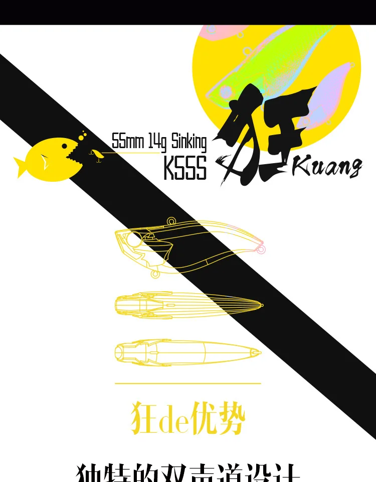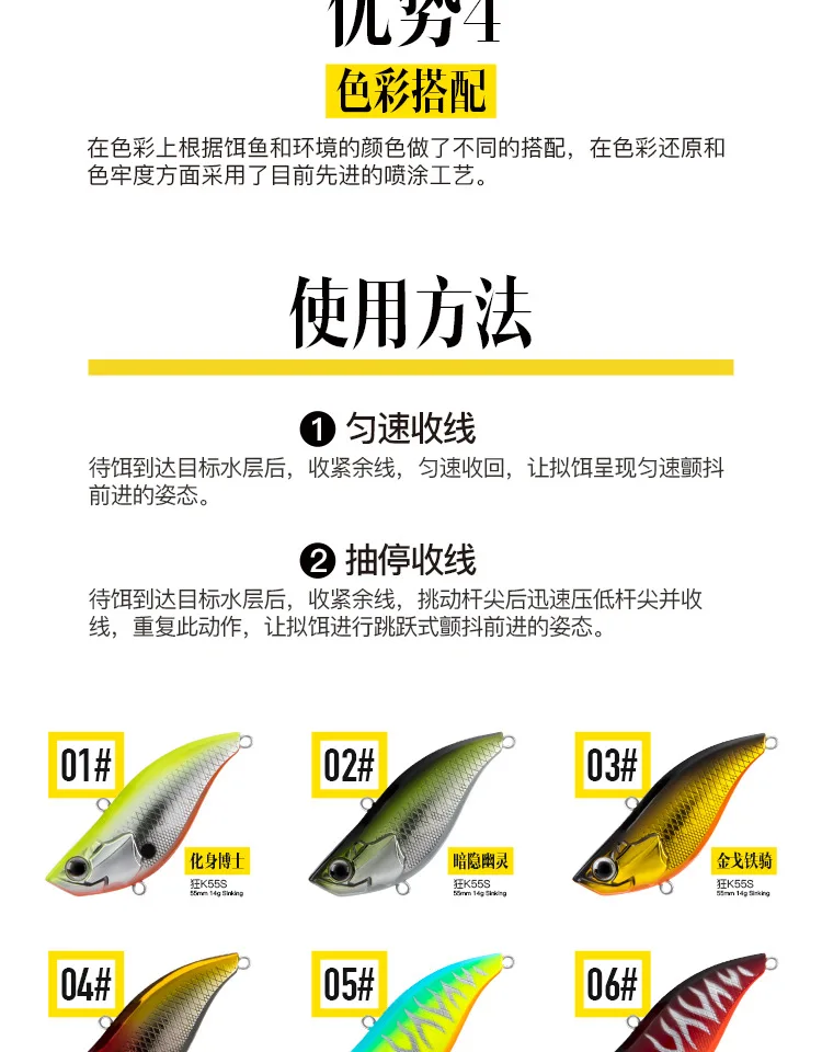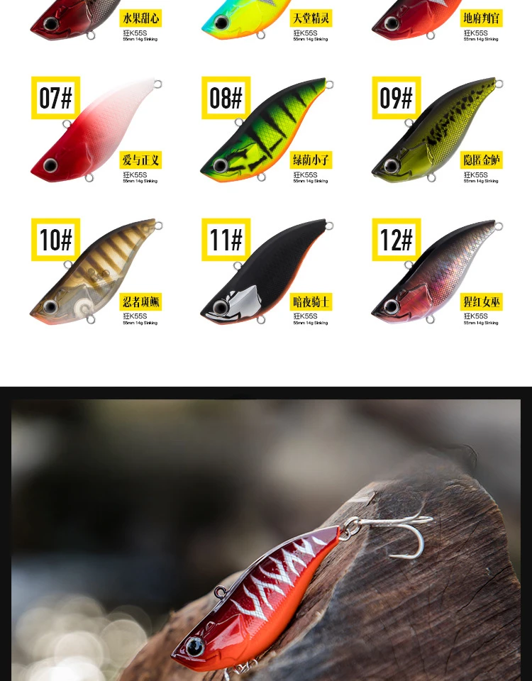 Señuelos de pesca Ratlin con vibración hundida, 55mm, 14g, tiro largo, cebo duro Artificial sin labios, agua salada, VIB, Crankbait, aparejos Wobblers