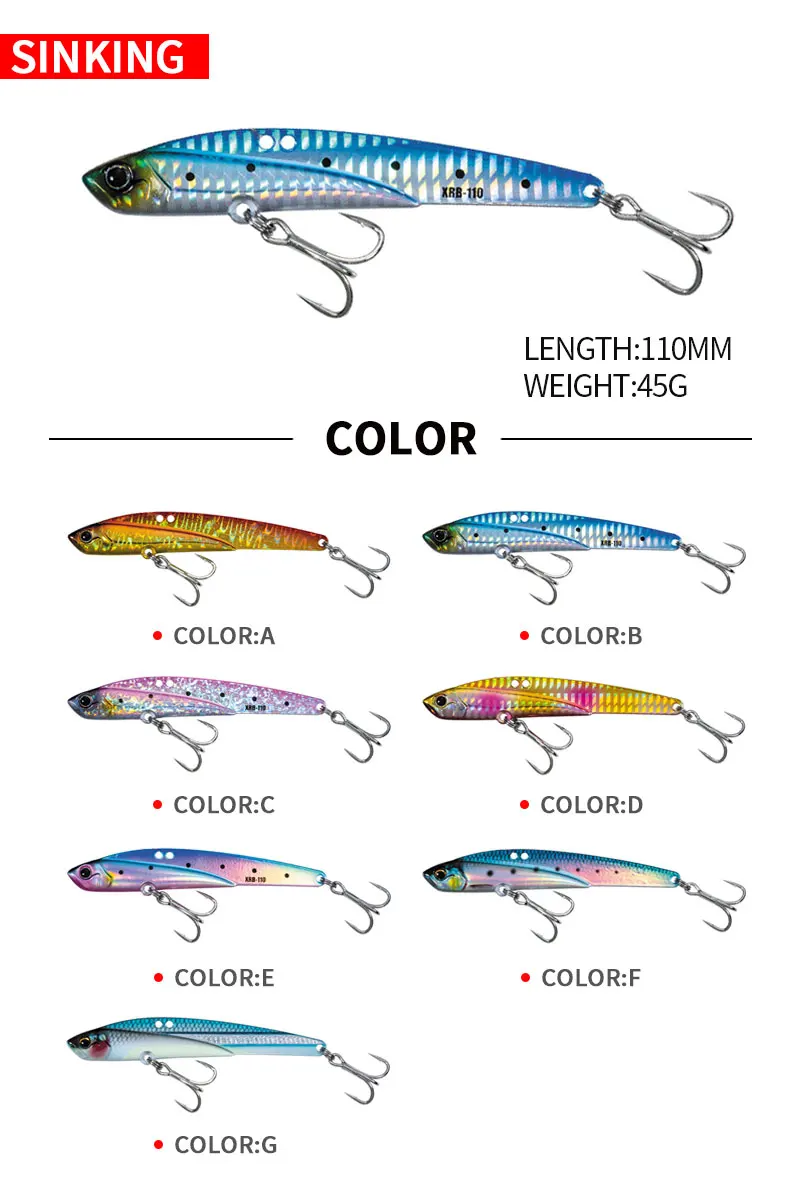 1Pcs Sinking Metal Vib Ratlin Fishing Lures 45g 110mm jigs Vibration Swimbait Wobbler for Bass Artificial Hard Baits Shore Cast Pesca