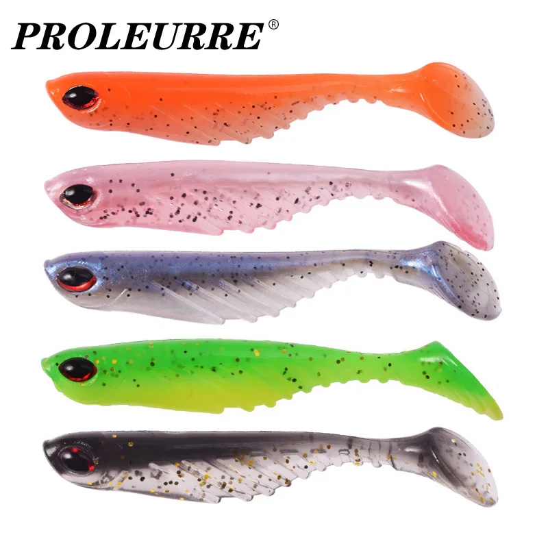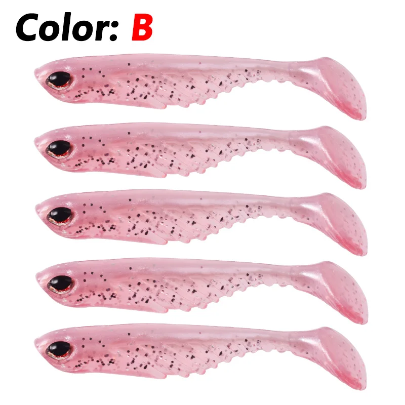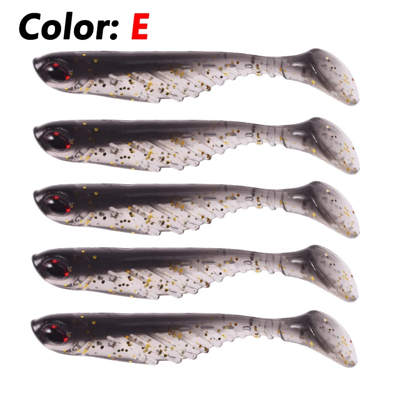 Señuelos de pesca de silicona con cola en T de ojos 3D de 5 piezas, 7cm, 2,8G, cebo suave de gusano, plantilla Wobblers, Swimbaits artificiales, aparejos de pesca de trucha y lubina