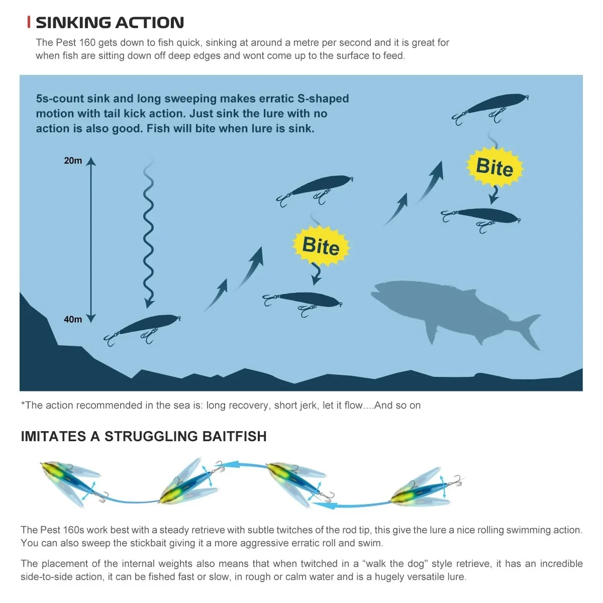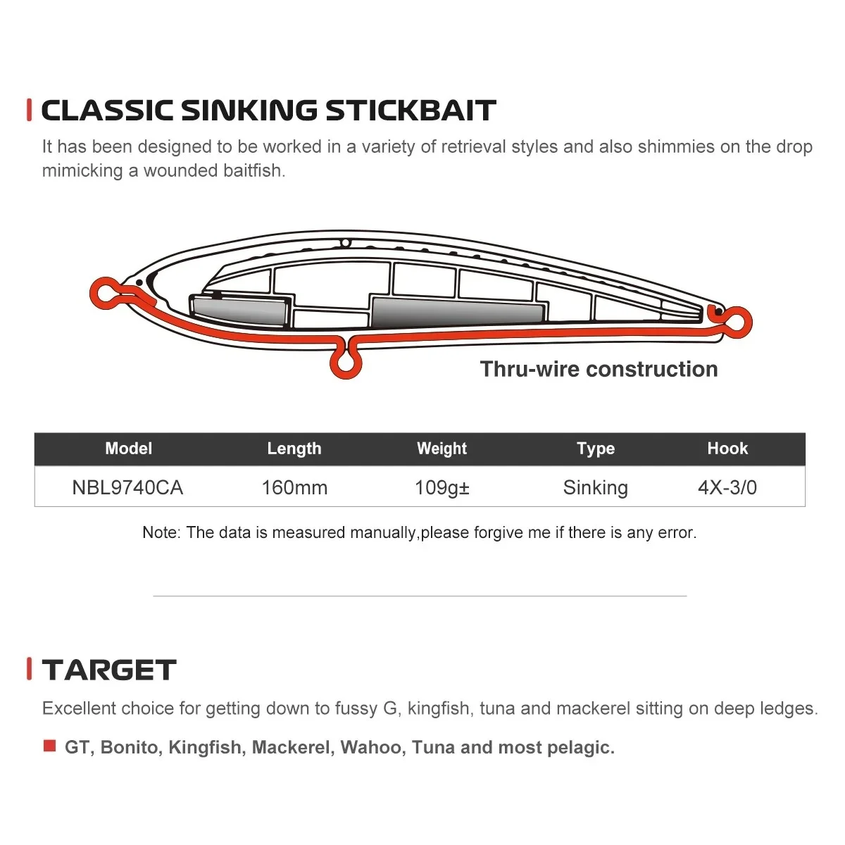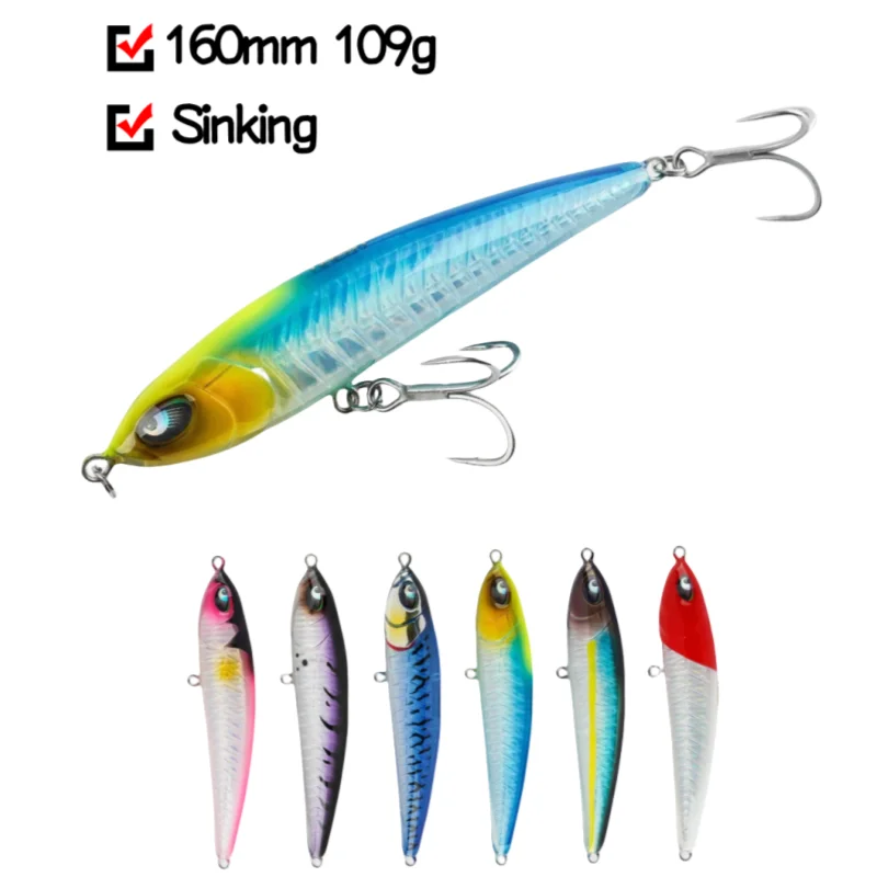 Señuelos de pesca Stickbait, 2 uds., 16cm, 109g, lápiz que se hunde, buenos cebos duros para nadar, lubina, Wobblers