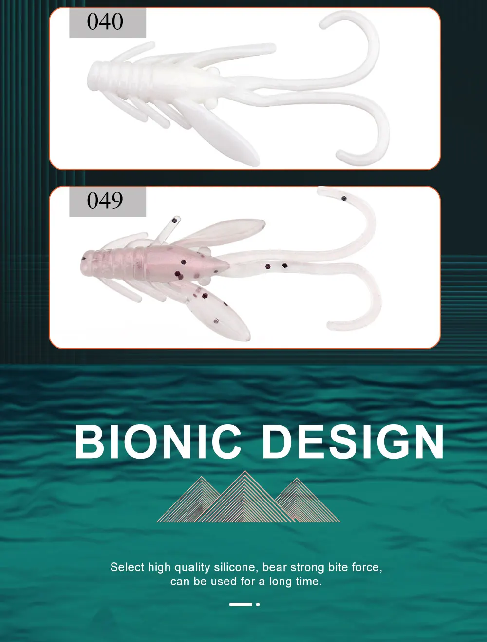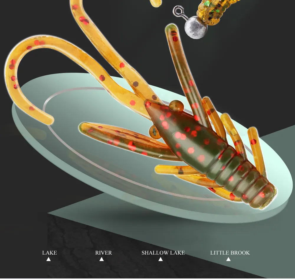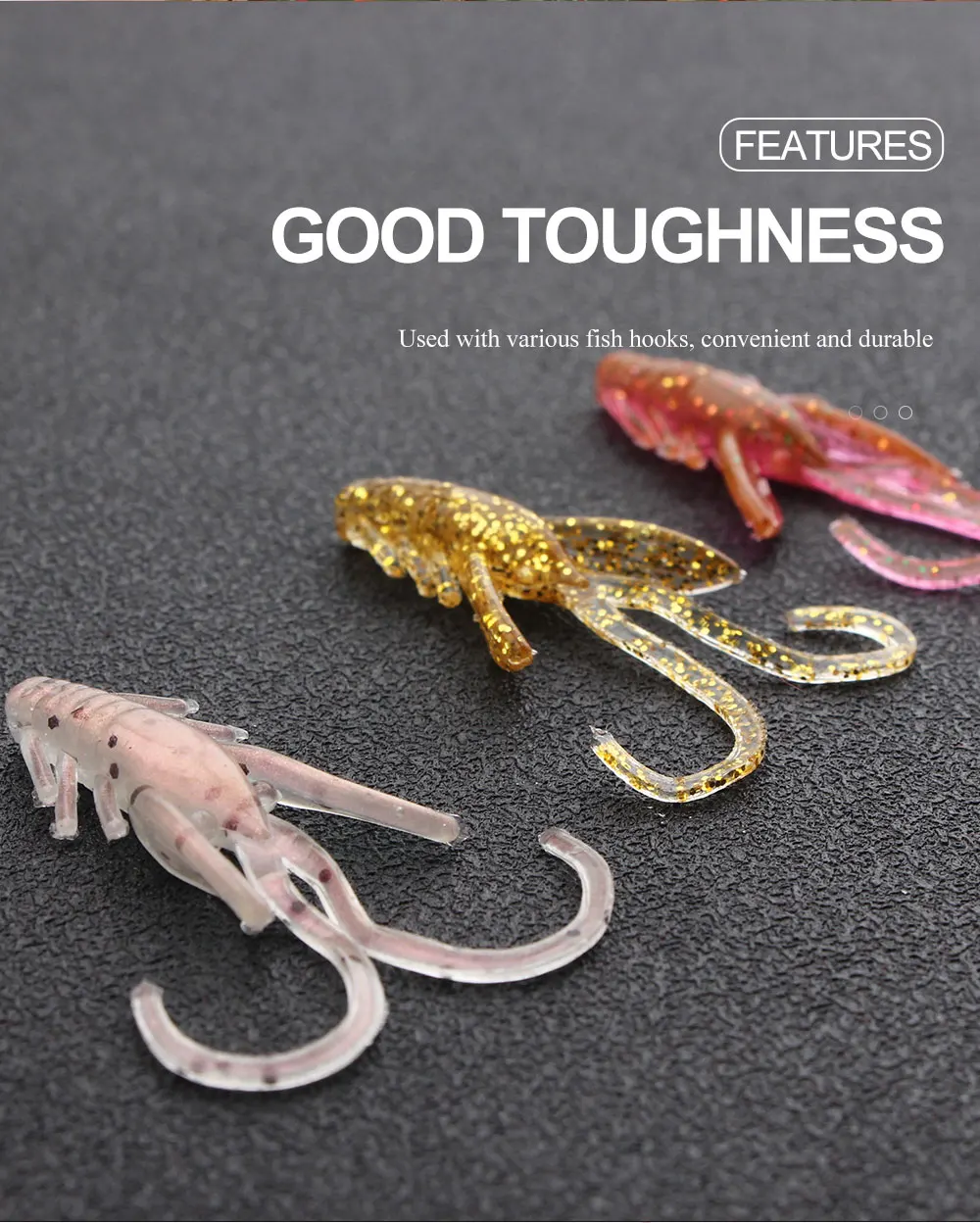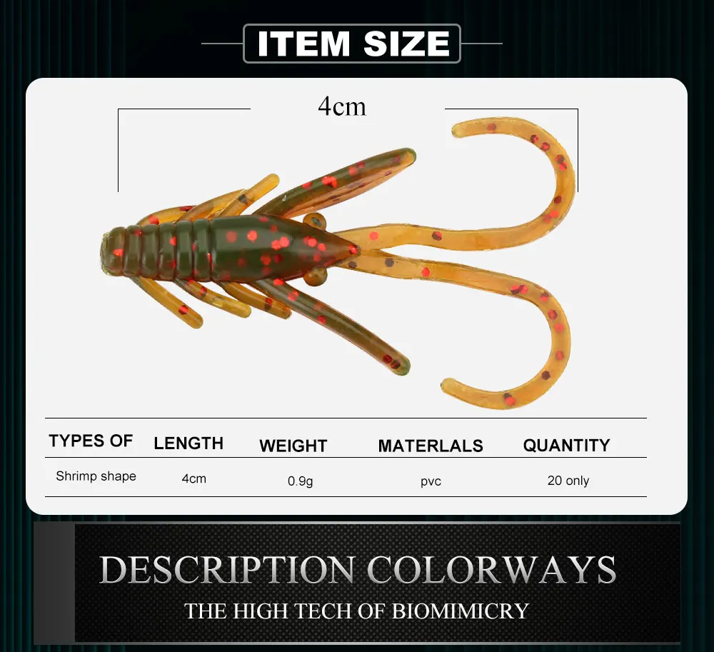 Señuelos de Pesca suaves de Camarón, 4cm, 0,9g, cebo de silicona, carpas, perca, accesorios de regalo, cabeza de plantilla de 1g, 20 unids/paquete