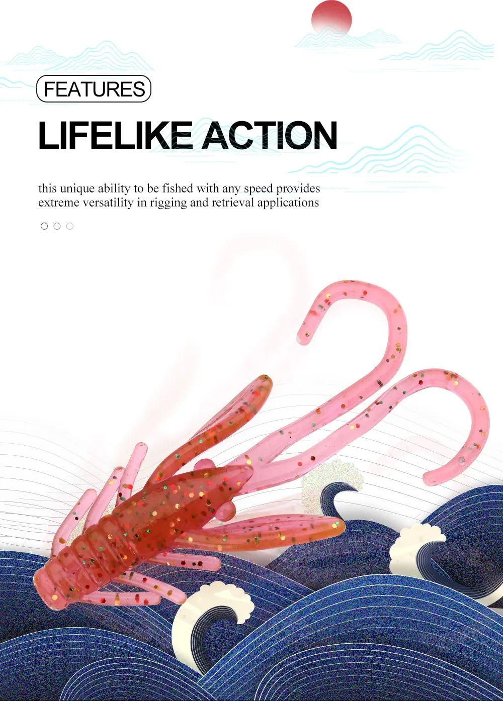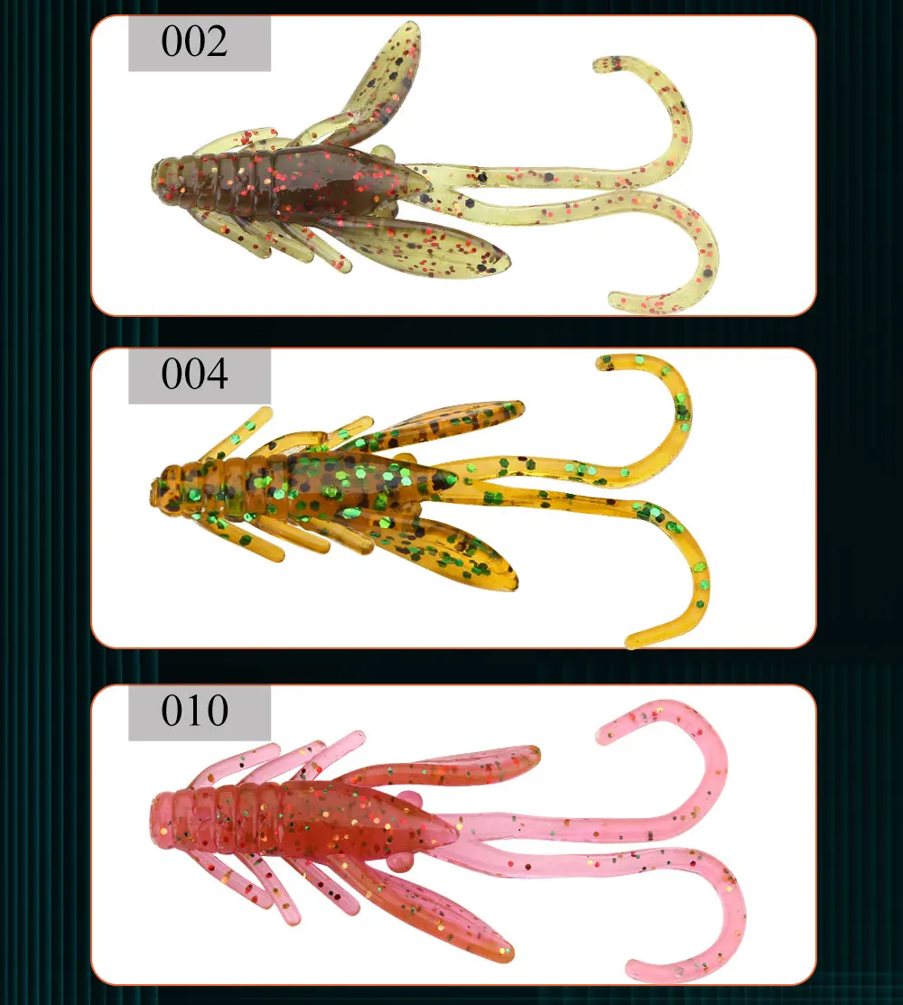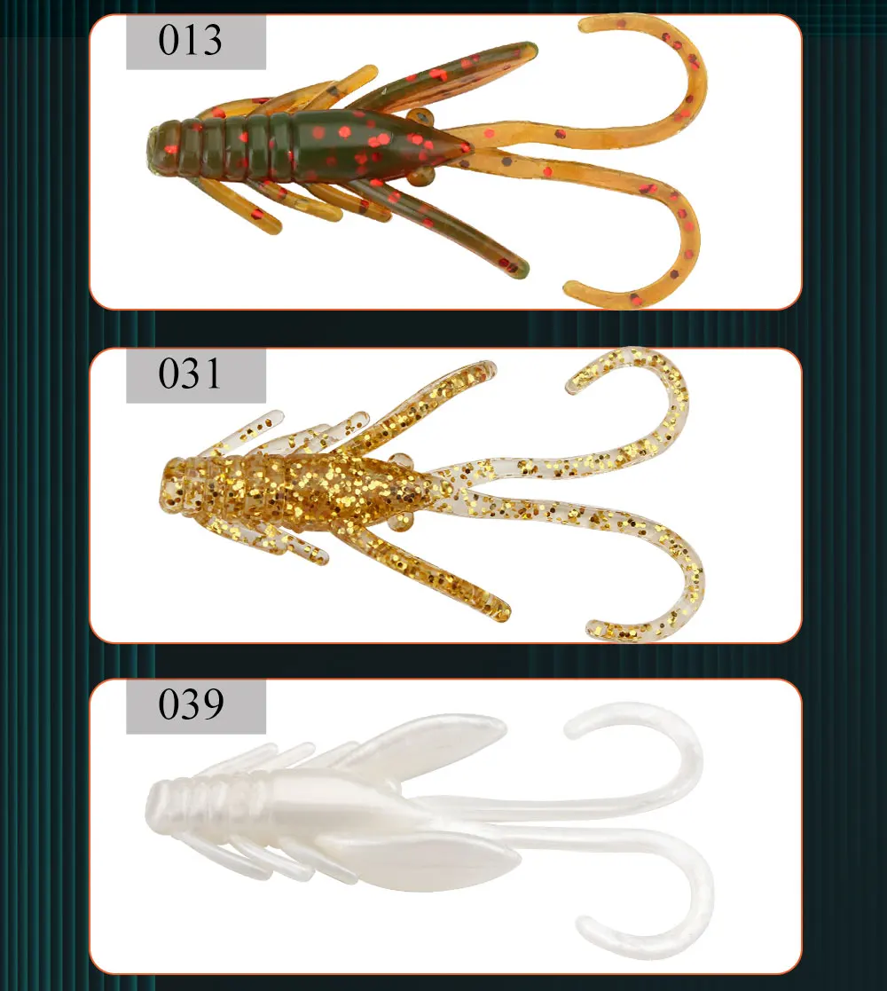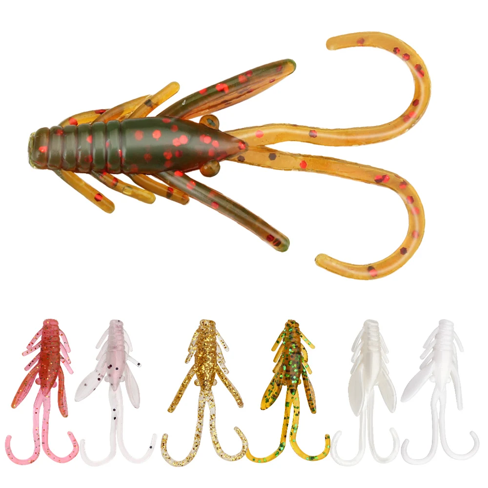 Señuelos de Pesca suaves de Camarón, 4cm, 0,9g, cebo de silicona, carpas, perca, accesorios de regalo, cabeza de plantilla de 1g, 20 unids/paquete