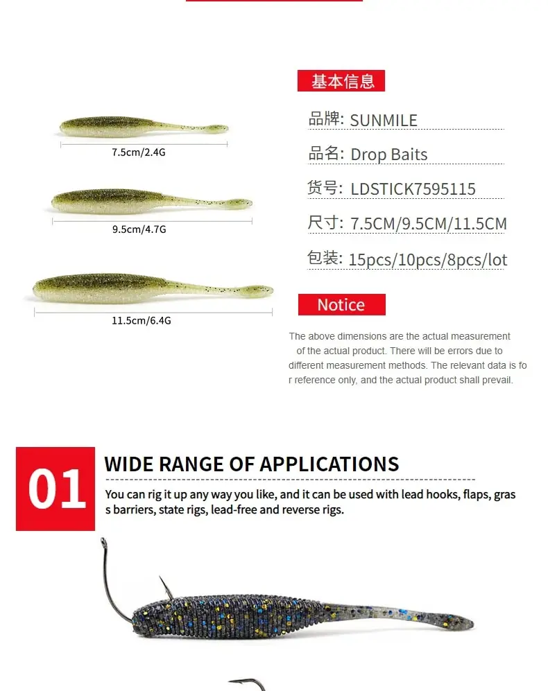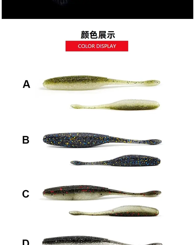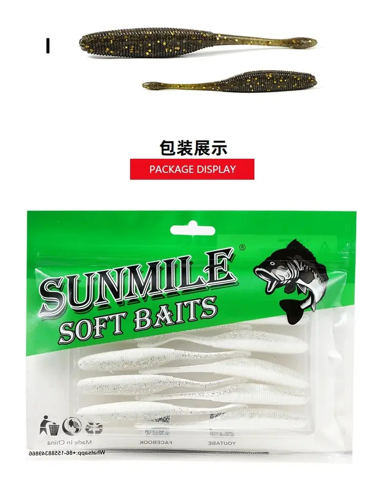 Nombre de la marca: SUNMILETipo: cebo blandoPeso: 2,2g/4,3g/5,7GLongitud: 7,5 cm/9,5 cm/11,5 cmColor: 6 coloresOEM: suministradoPaquete: 15/10/1/2/8 pcs/bag.