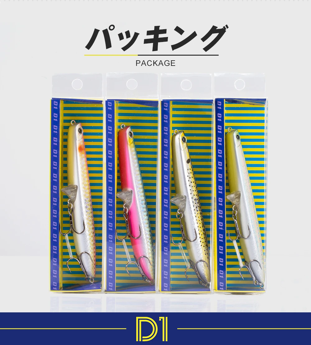 D1 Pencil Surface Fishing Lures 120mm/19g Saltwater Top Water Floating Rolling Artificial Plastic Hard Bait for Bass Pike Tackle