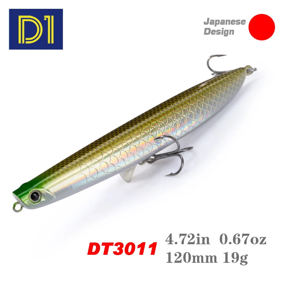 D1 Pencil Surface Fishing Lures 120mm/19g Saltwater Top Water Floating Rolling Artificial Plastic Hard Bait for Bass Pike Tackle