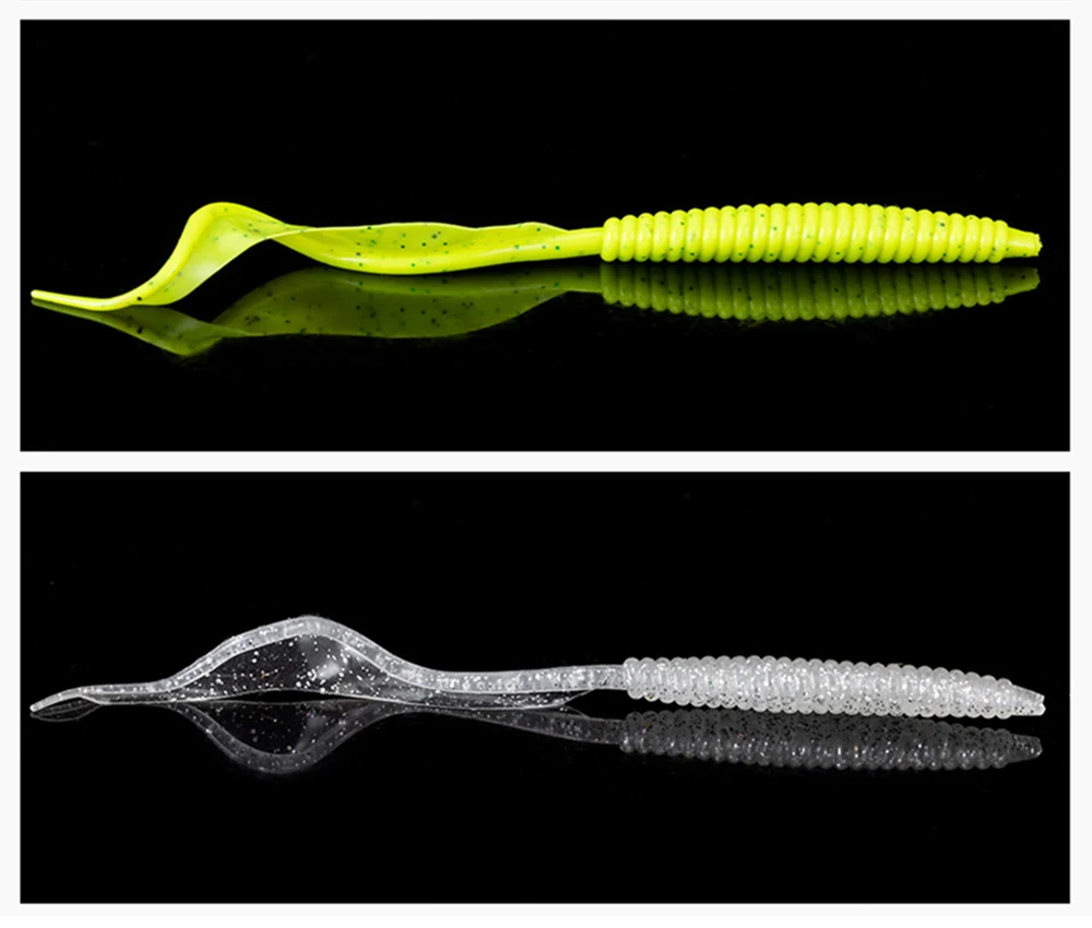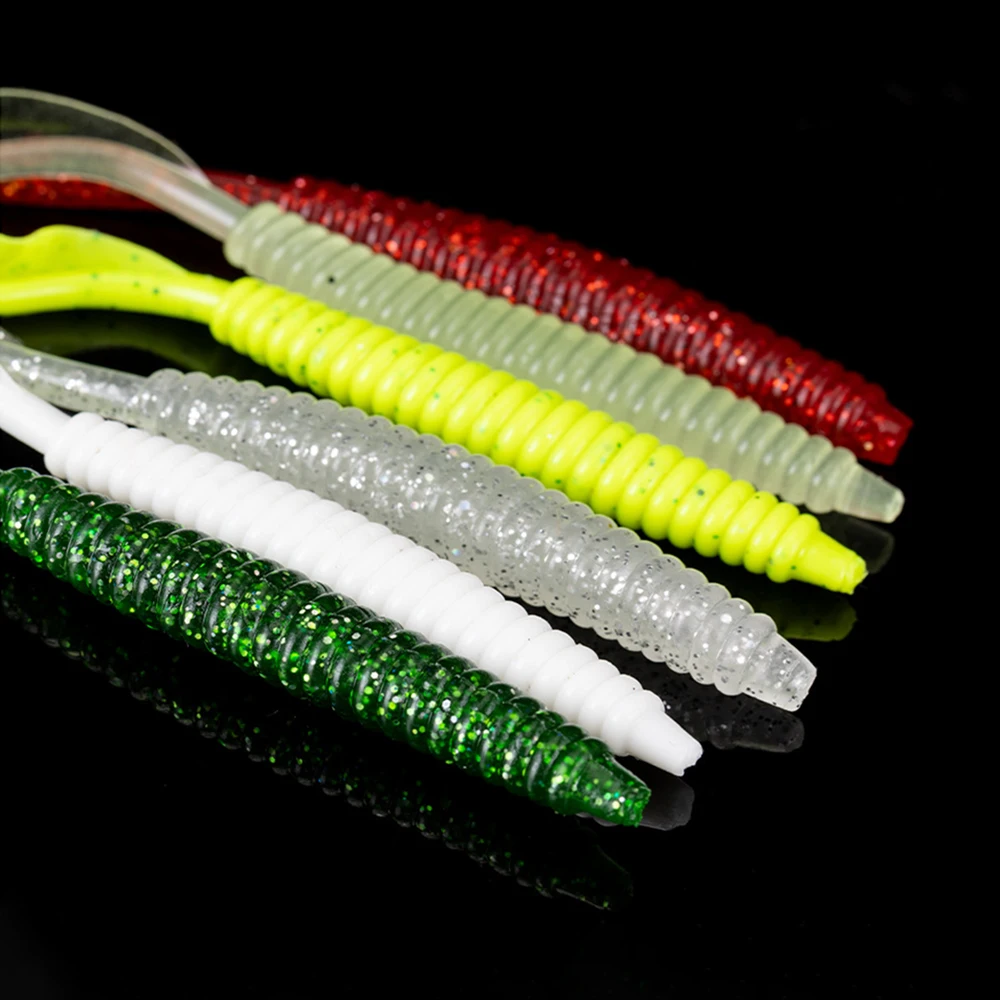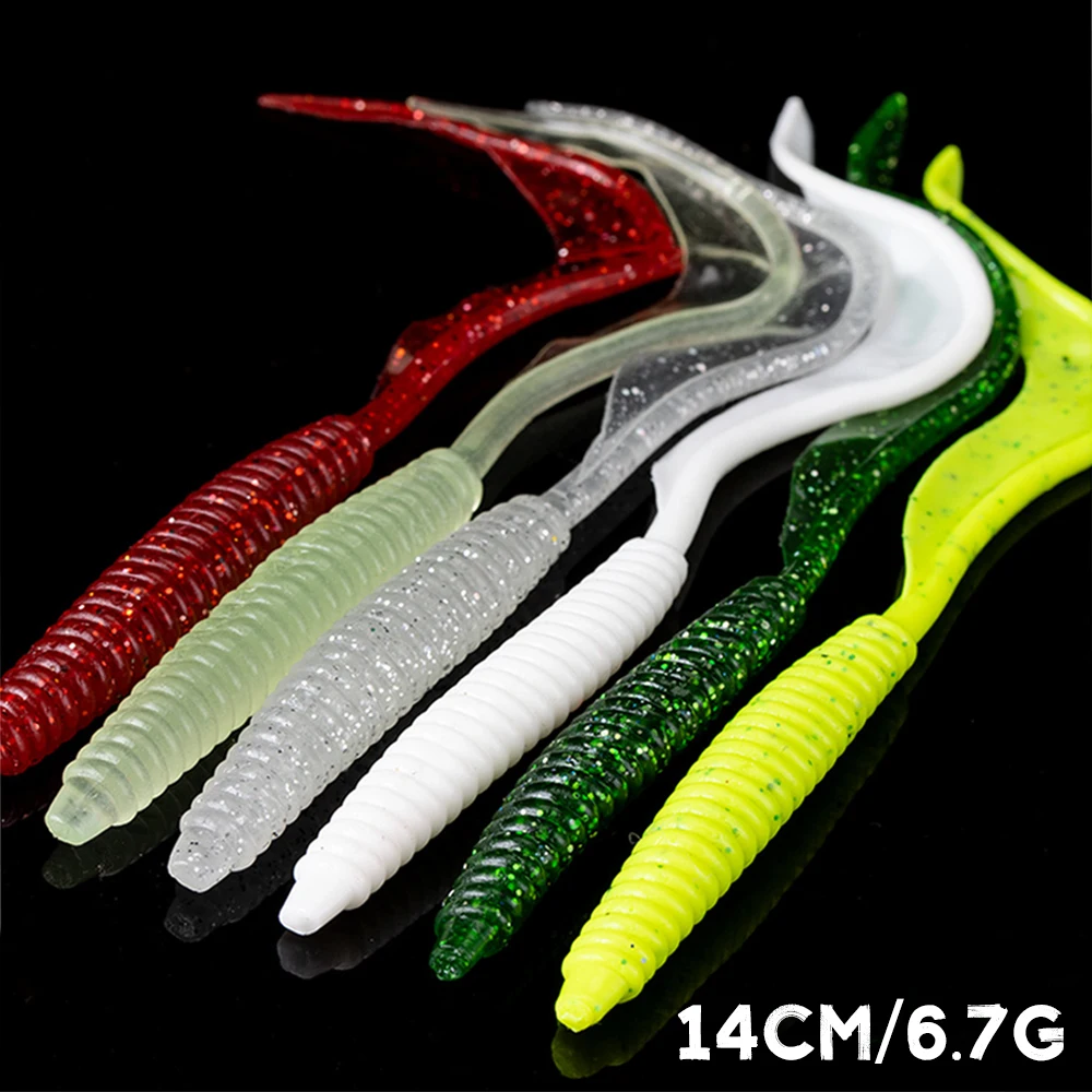 Señuelos de Pesca Swimbait, cebos de pesca con cola de falda, cabeza de plantilla, señuelos de plástico suave que brillan, cebos de pesca de pulpo, trucha, lubina, Cola gruesa, 5 piezas