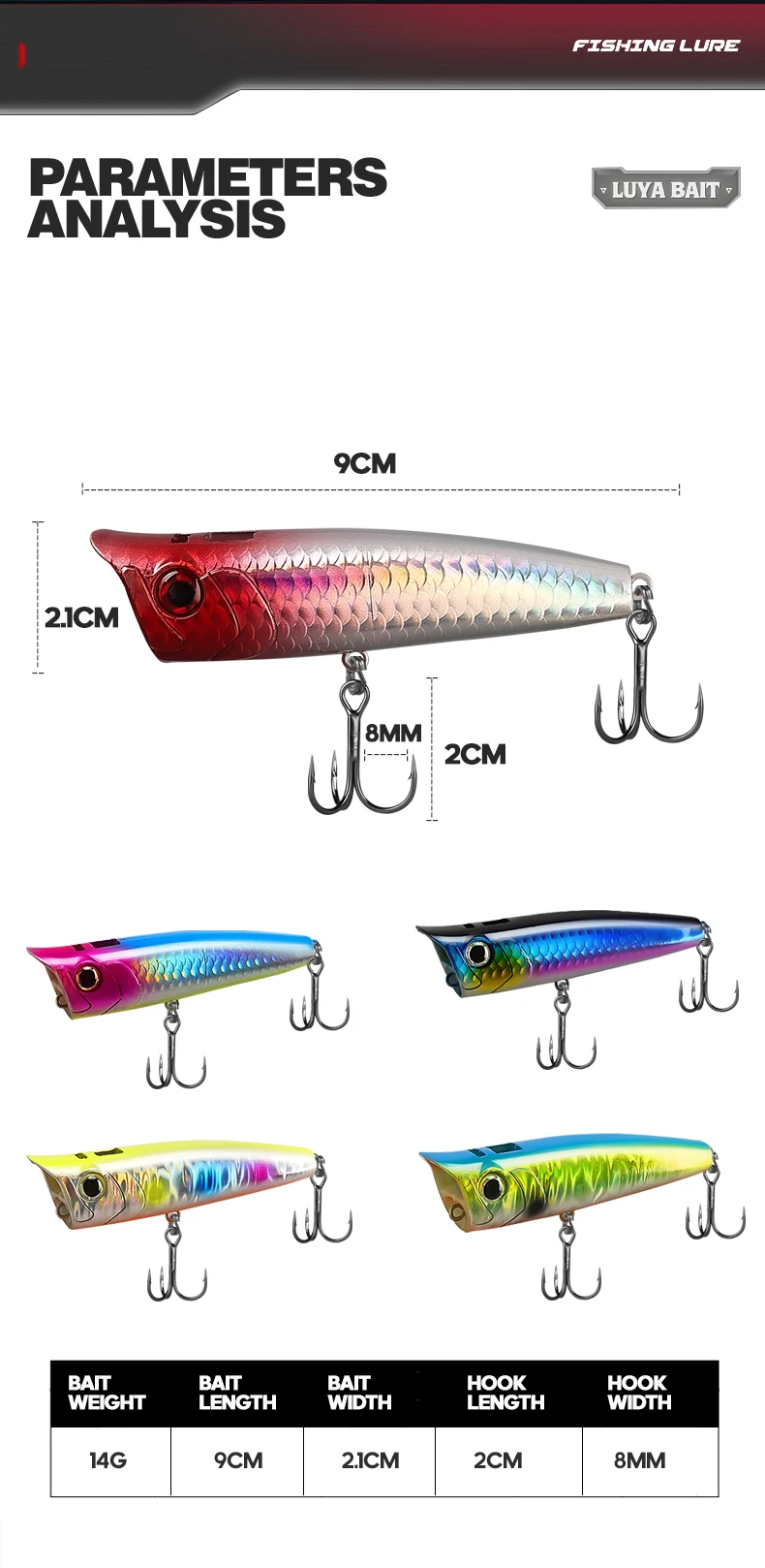 Señuelos de pesca TAIYU 14g 9cm Topwater Popper Wobbler Artificial cebos duros coloridos agua dulce/agua salada señuelo de pesca de gran ruido