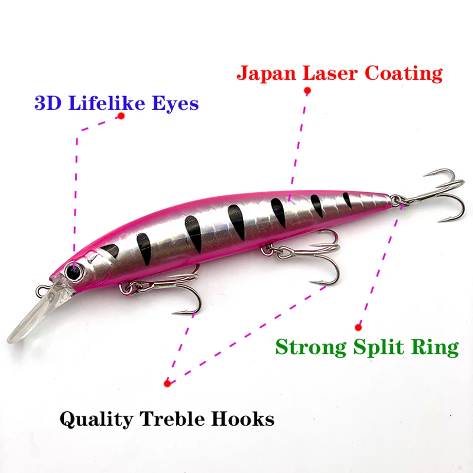3. Los cebos tienen una pintura realista y ojos 3D vívidos, hacen que el cebo parezca peces reales nadando en el agua durante la pesca.
