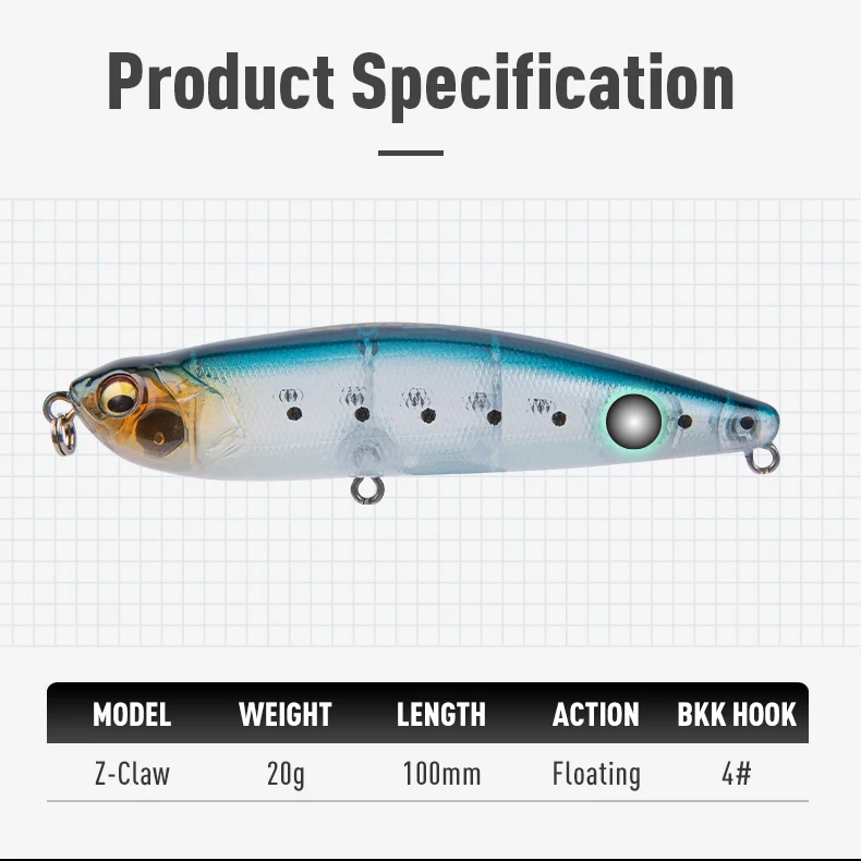 LEYDUN Z-Claw Floating Pencil Fishing Lures Stickbait Topwater Surface Walk The Dog100mm 20g High Quality Hard Baits Wobblers For Bass Pike