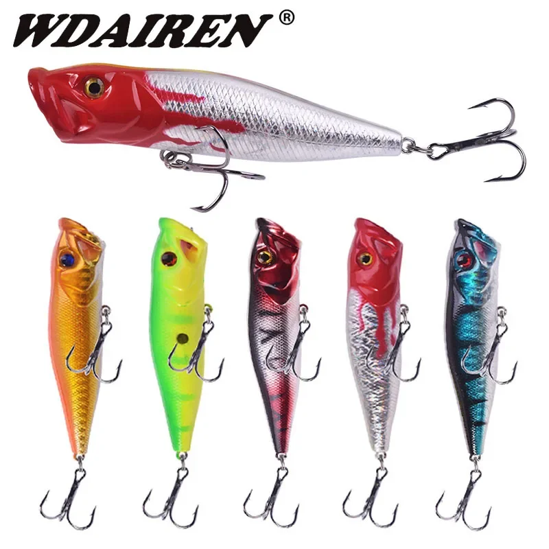 Señuelos de pesca Topwater, cebo artificial duro Popper Wobbler flotante de 9cm y 12,5G, con anzuelos triples, 6 #, para Lucio, bagre, 1 piezas
