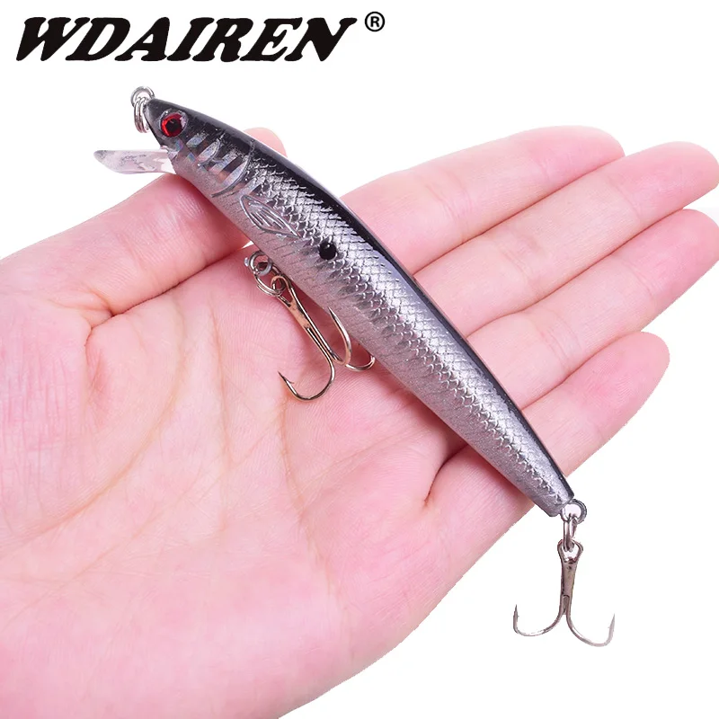 1 piezas de Señuelos de Pesca Topwater Wobblers 95mm 8g Minnow flotante ojos 3D cebo duro con anzuelos triples Crankbait aparejo de pesca