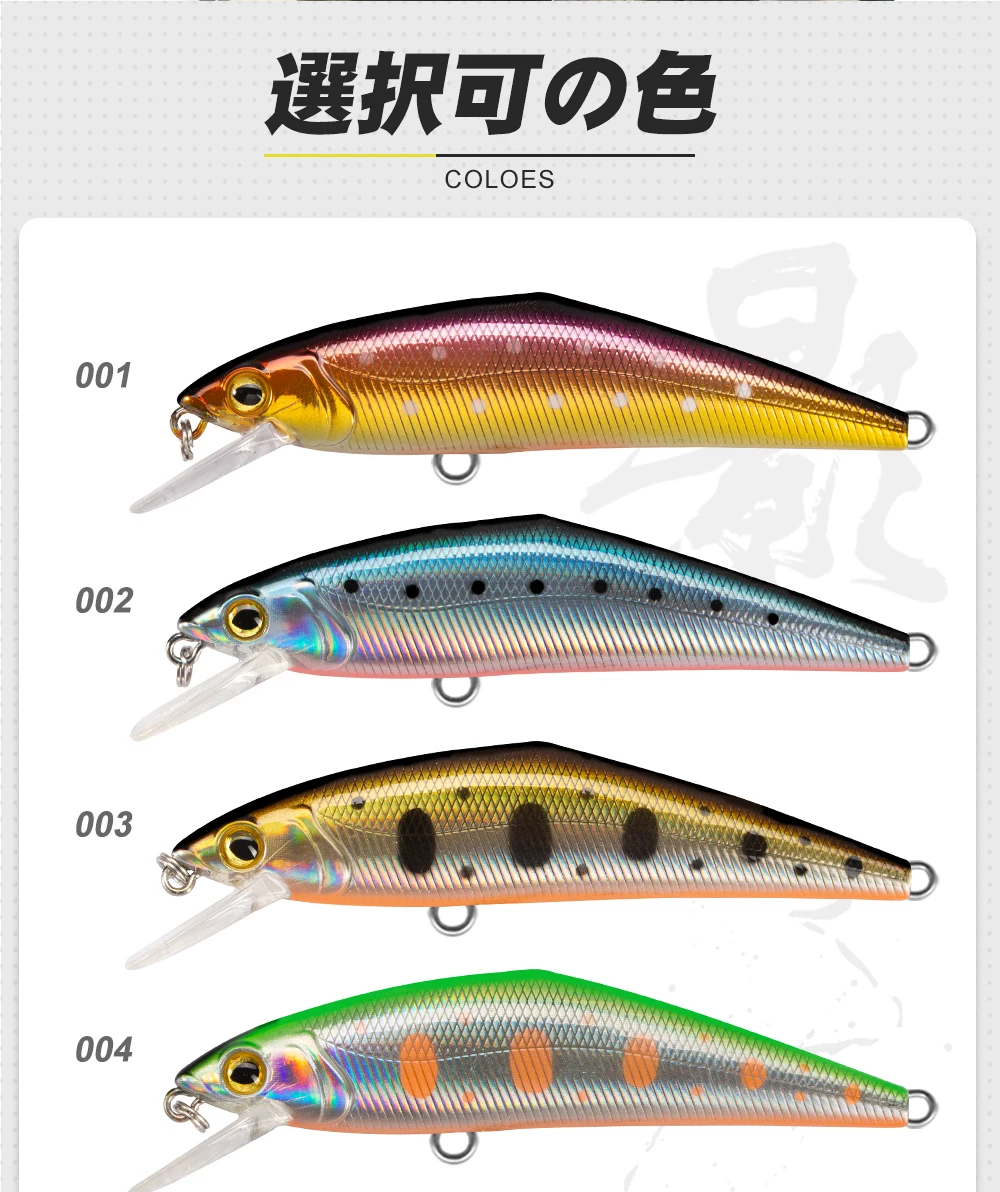"D" tiene un peso de tungsteno incorporado con una gravedad específica de 18 y, al mismo tiempo, garantiza un peso de 4,5 g por 50 mm, 7 g por 63 mm y 9,5 g por 72 mm, la forma del cuerpo ultrafina proporciona una increíble "potencia de larga distancia"..・Indica "potencia profunda" y "potencia direccional".